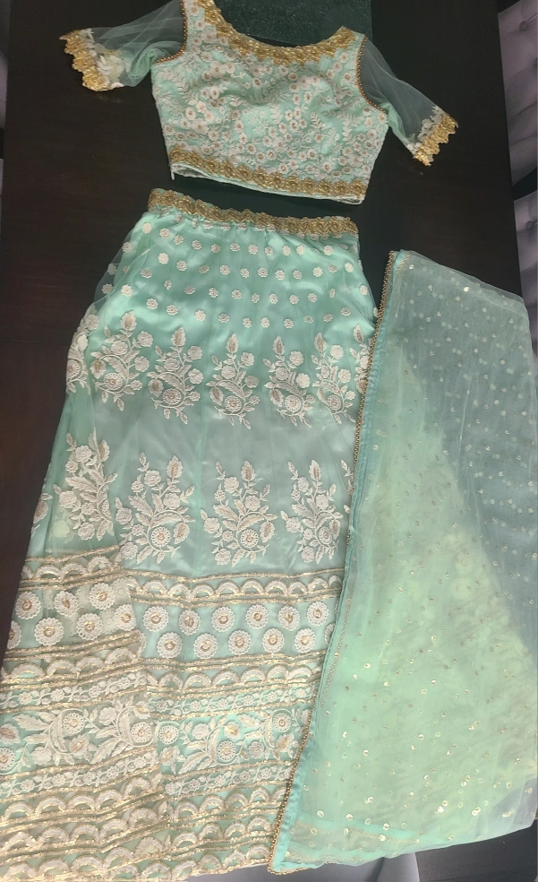 in pristine condition selling my beautiful lehengha choli for sale in mint green perfect for the summer