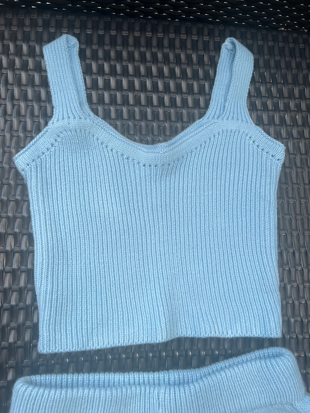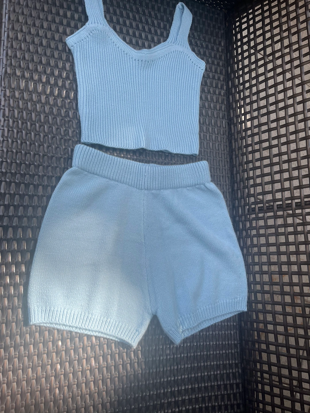 Super soft, baby blue knit 2 piece short set