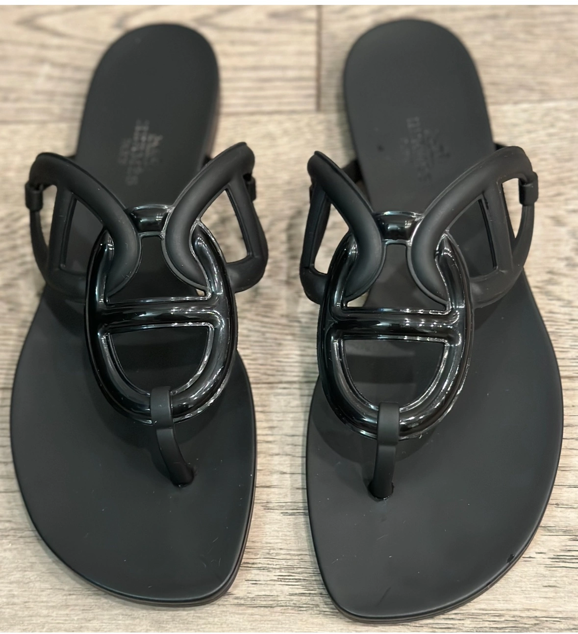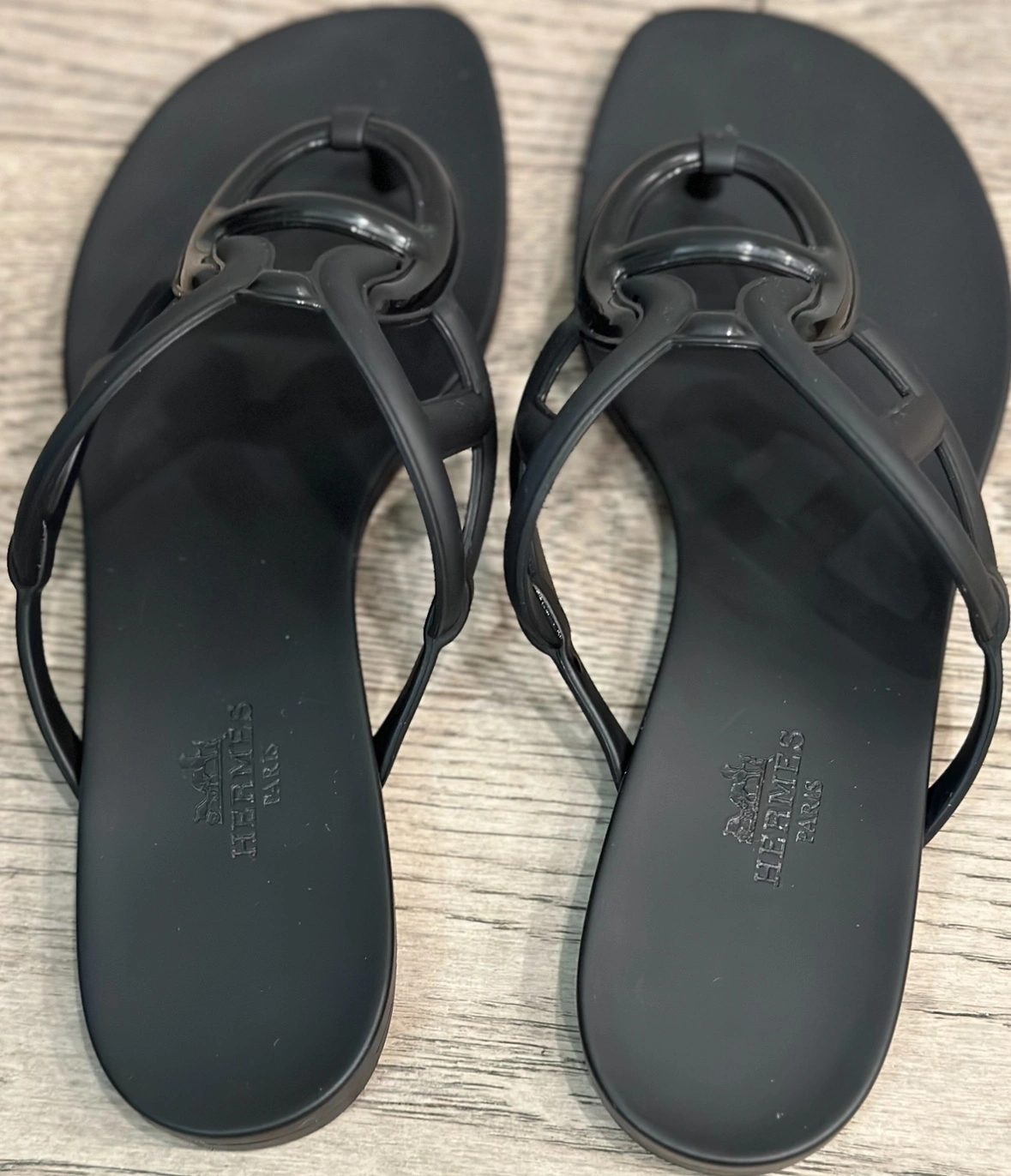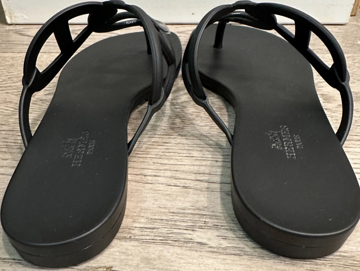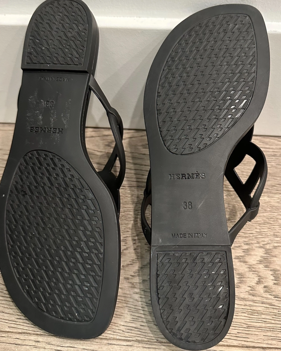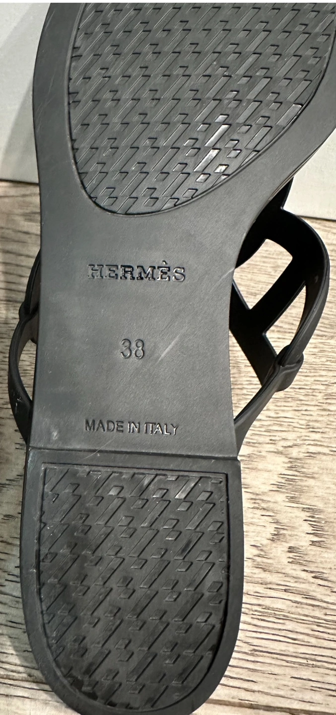 86Sandals Authentic Designer size 8 black rubber Pictured is the receipt of sandals purchased from Mine&Yours consignment and verified Authentic. Local Delivery is available