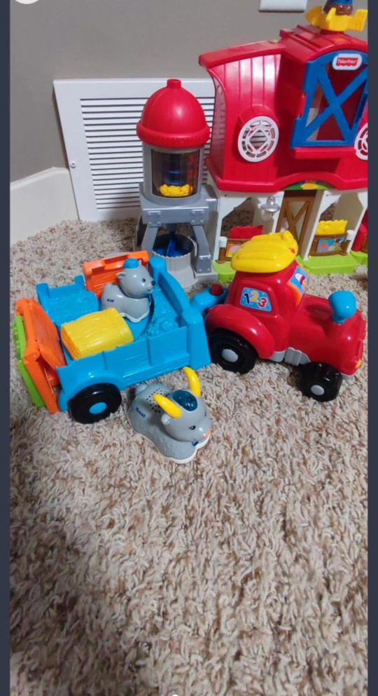 57This interactive playset includes a farmer figure and animal figures like a horse, cow, pig, and sheep that can be played with in the two-story barn. Animal Wagon.