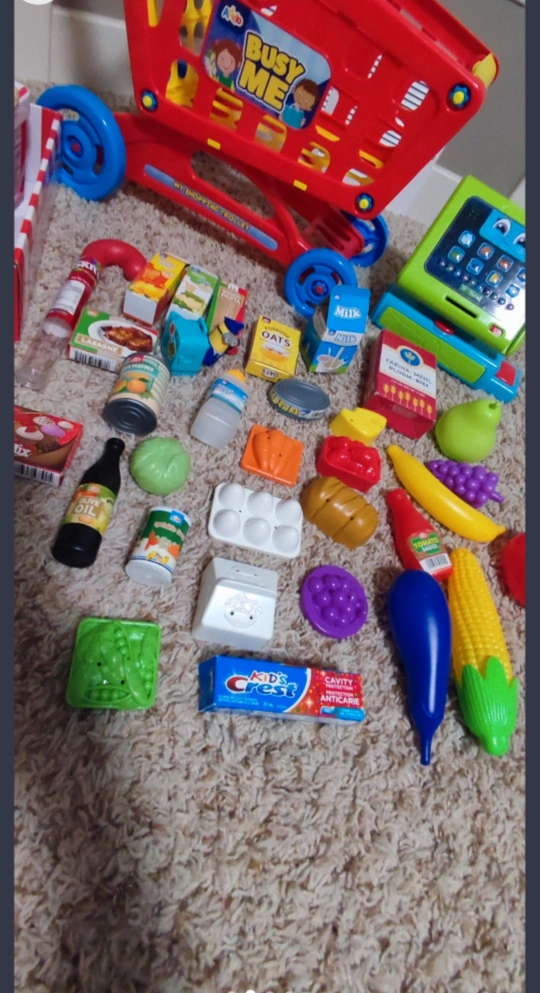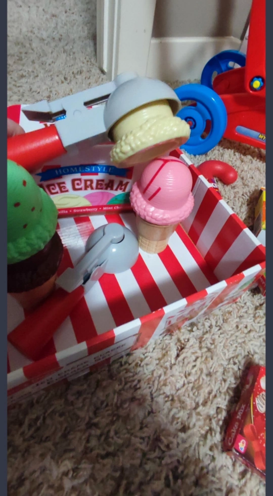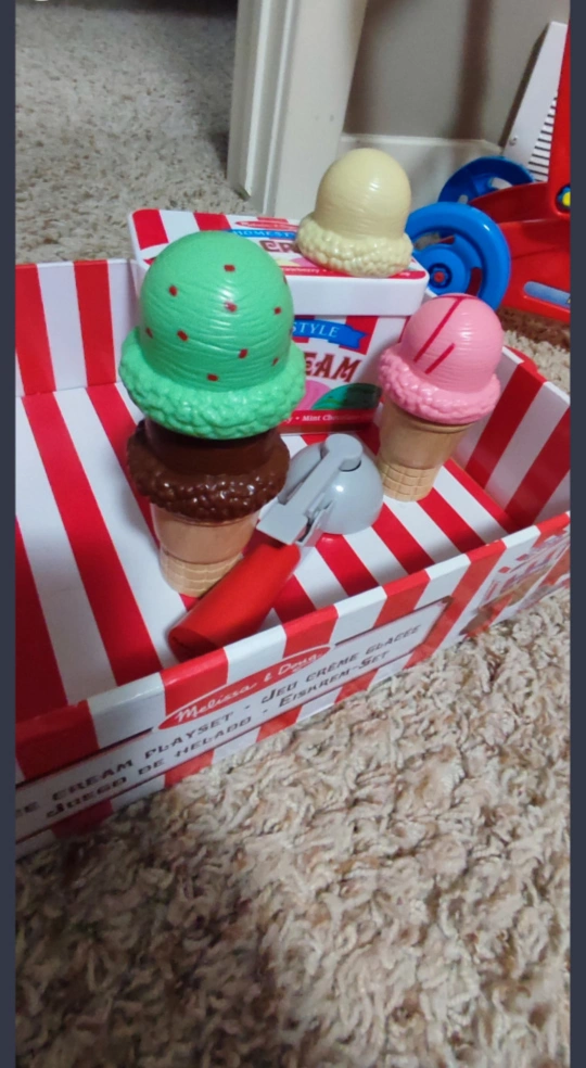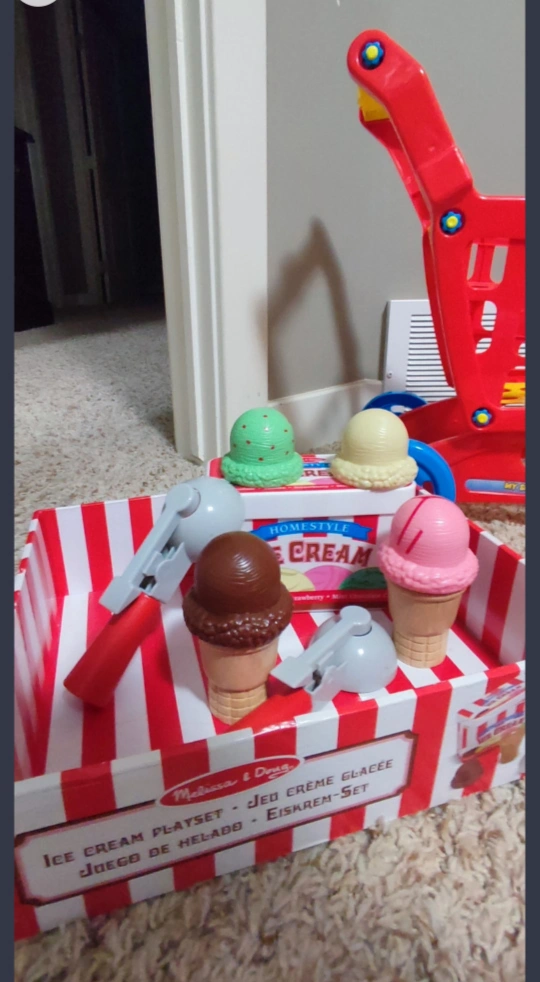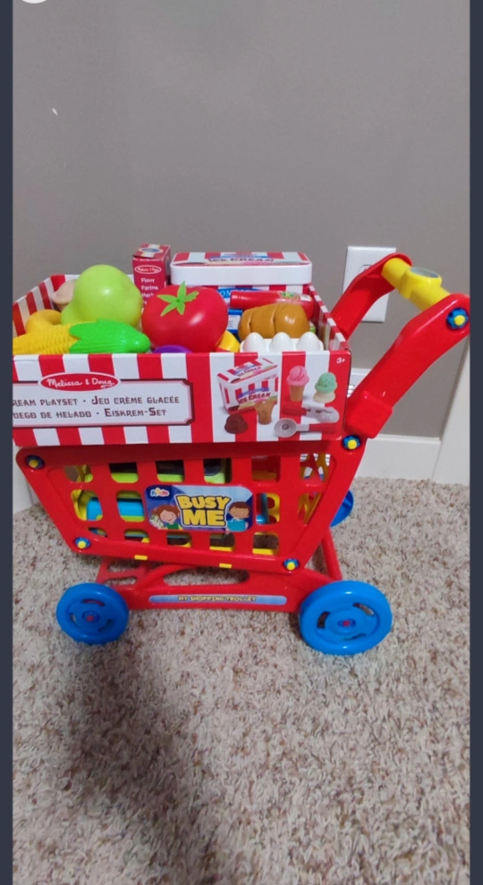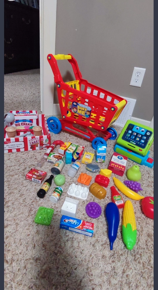 57Cool play set ( shopping cart, cash register with money and card, set of groceries, Ice cream play set from Melissa & Doug)