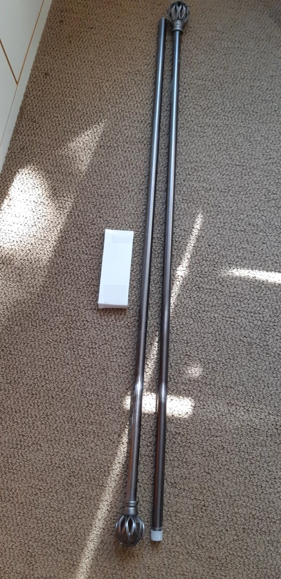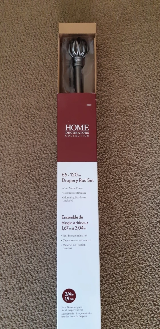 810Stylish curtain rod Colour is gun metal Includes mounting hardware