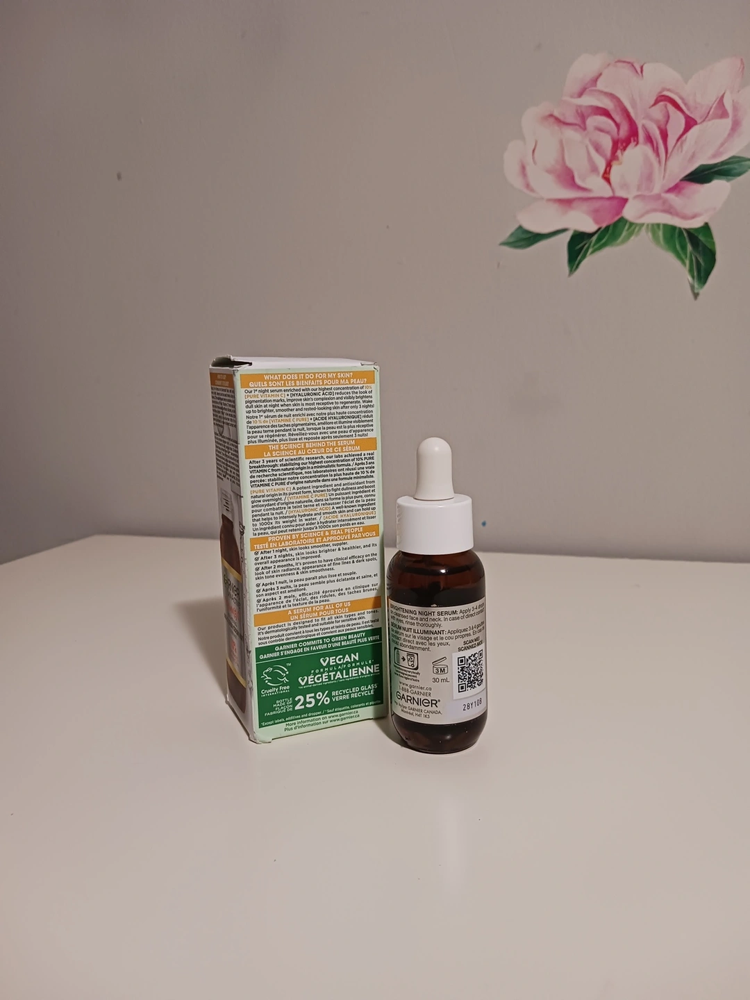 HOW TO USE: Apply 3–4 drops on cleansed face and neck every night and follow with a moisturizer, Can be used up to twice a day as desired. Pair with other Garnier Vitamin-C products