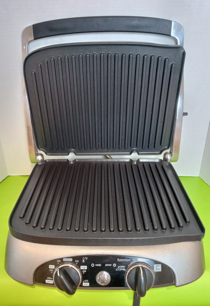 GE table top grill with removable plates.
