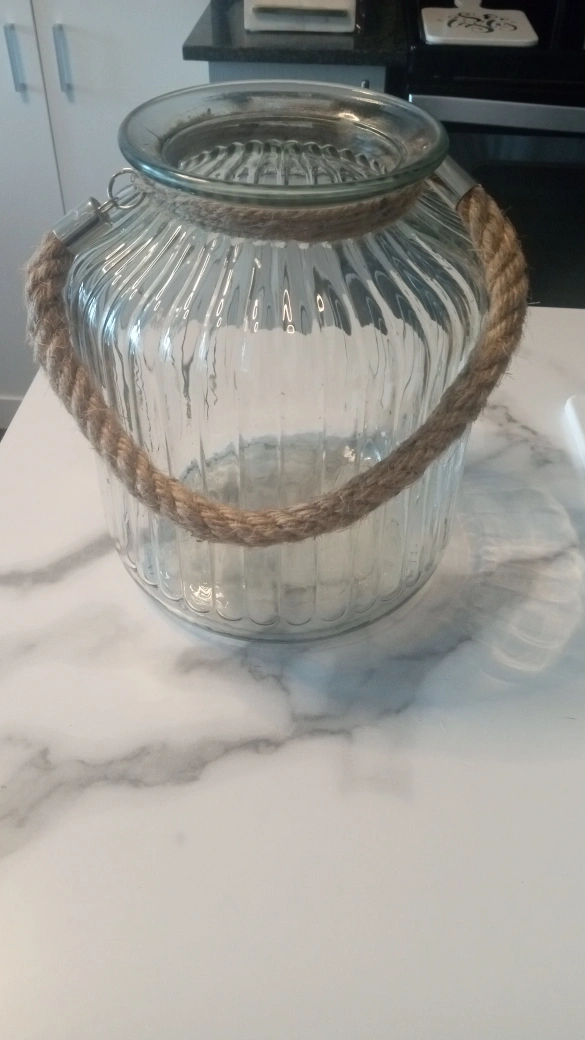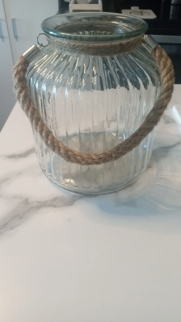 Glass. Opening 3 inches, base is 6 inches, length is 8 inches. Not negotiable.
