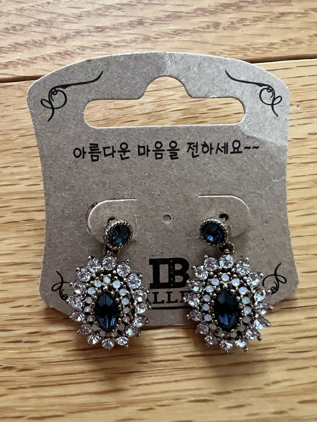 Brand new blue jewelled earrings that's never been worn, so in very pristine condition. Perfect accessory for proms or graduations or even everyday wear.