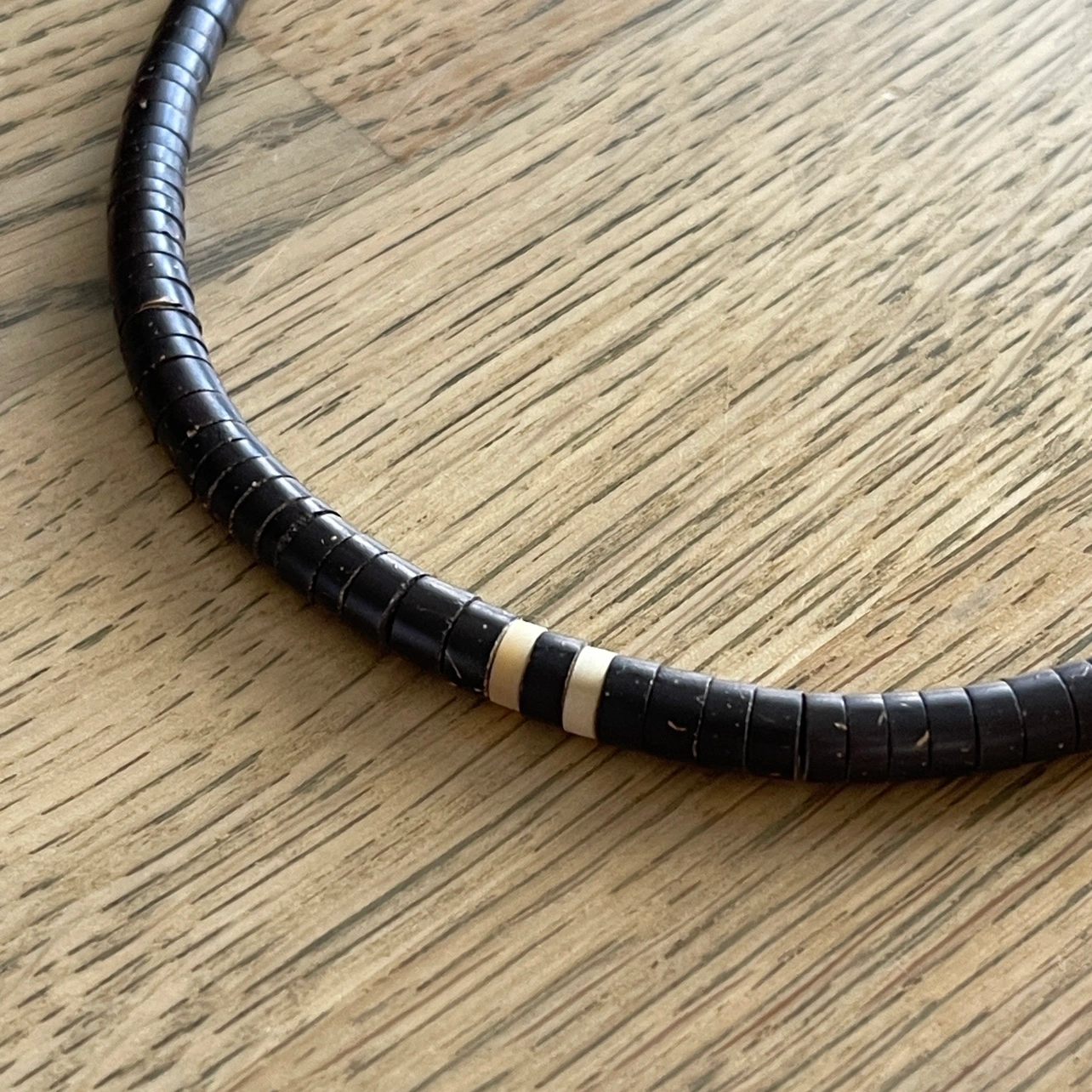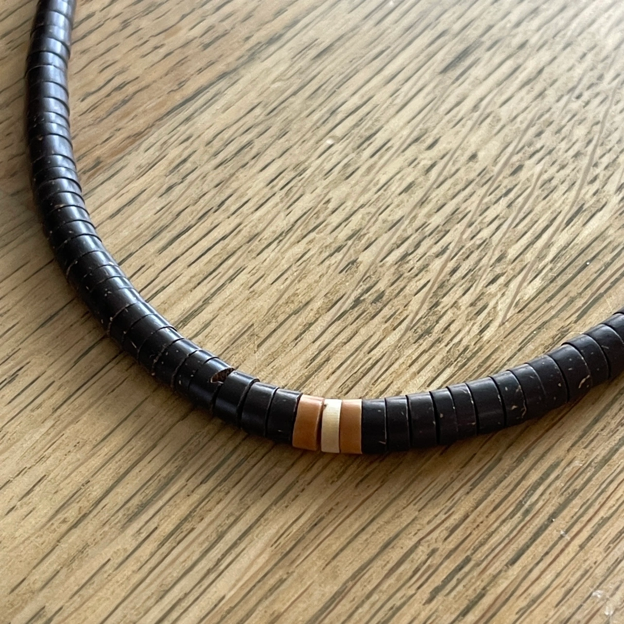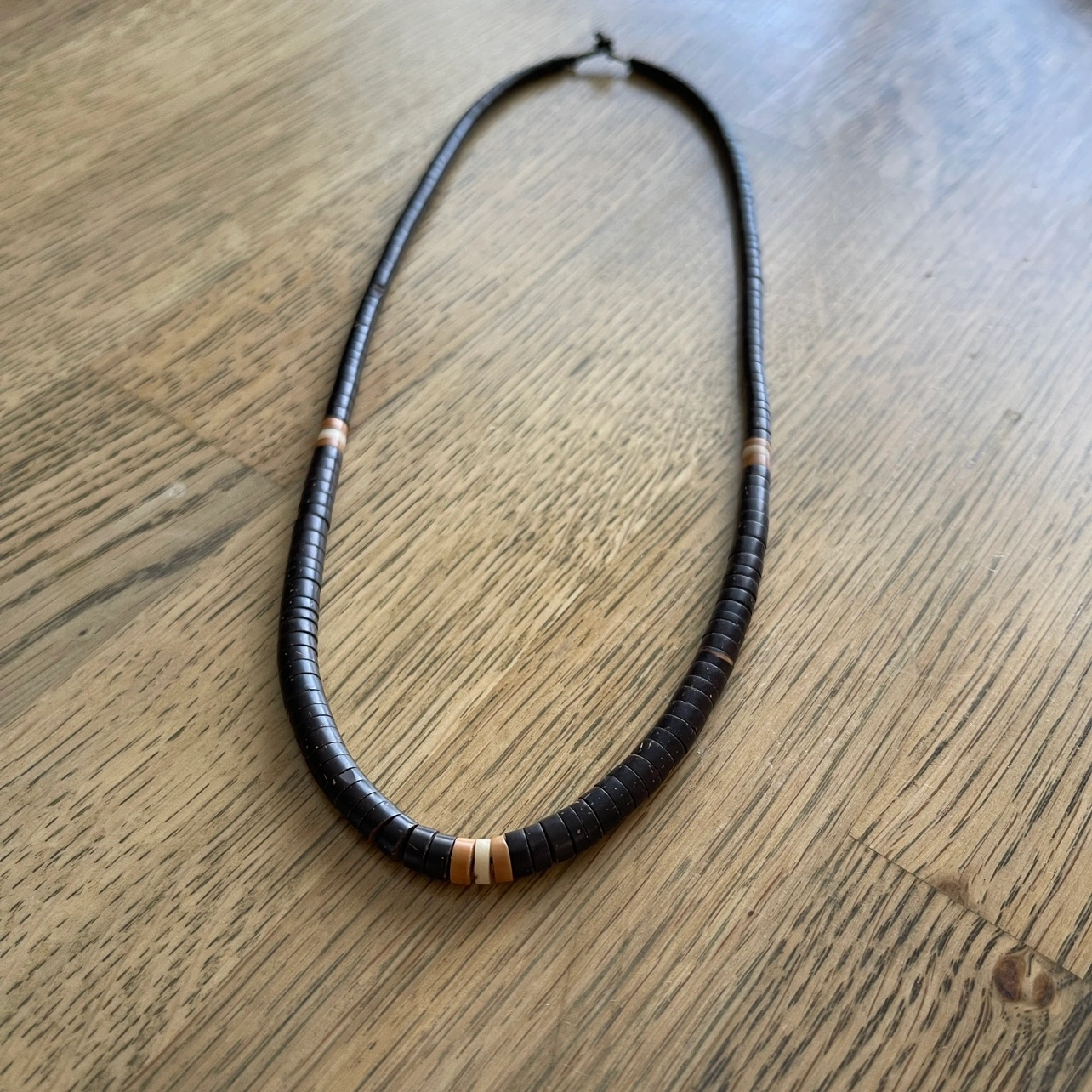 A truly piece of art. Handcrafted necklaces by natives of the Amazon (Brazil) made of coconut shell and measuring 20” long. I have two available.