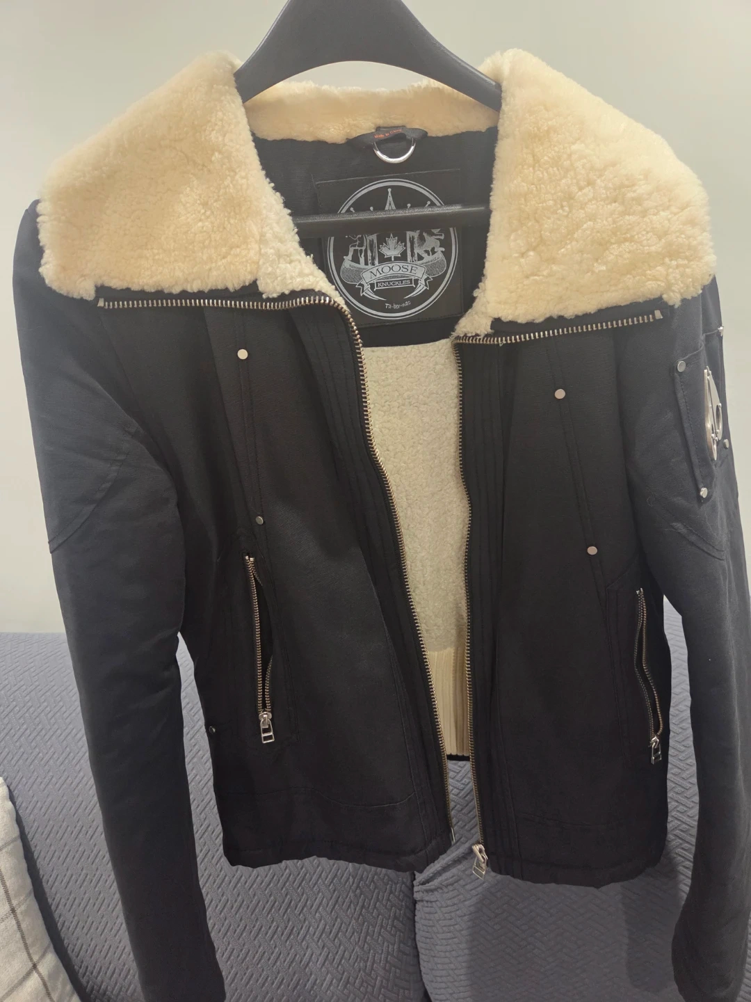 Men's Moose Knucle Bomber Jacket with collar.