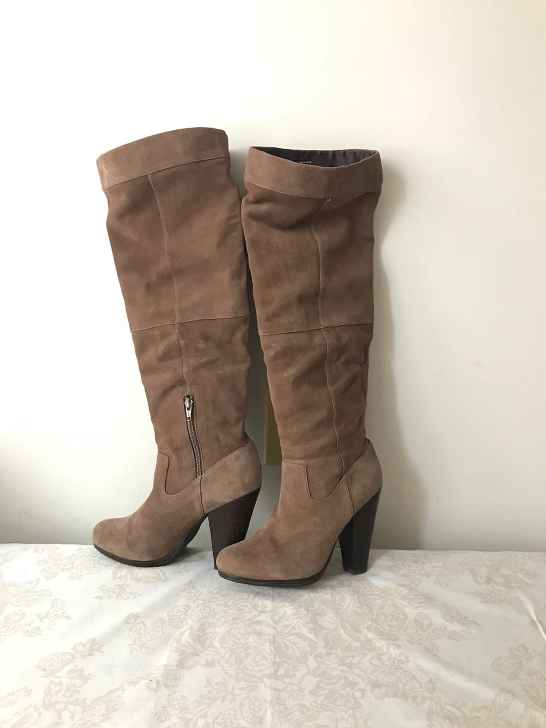 Knee high faux suede boots in tan brown