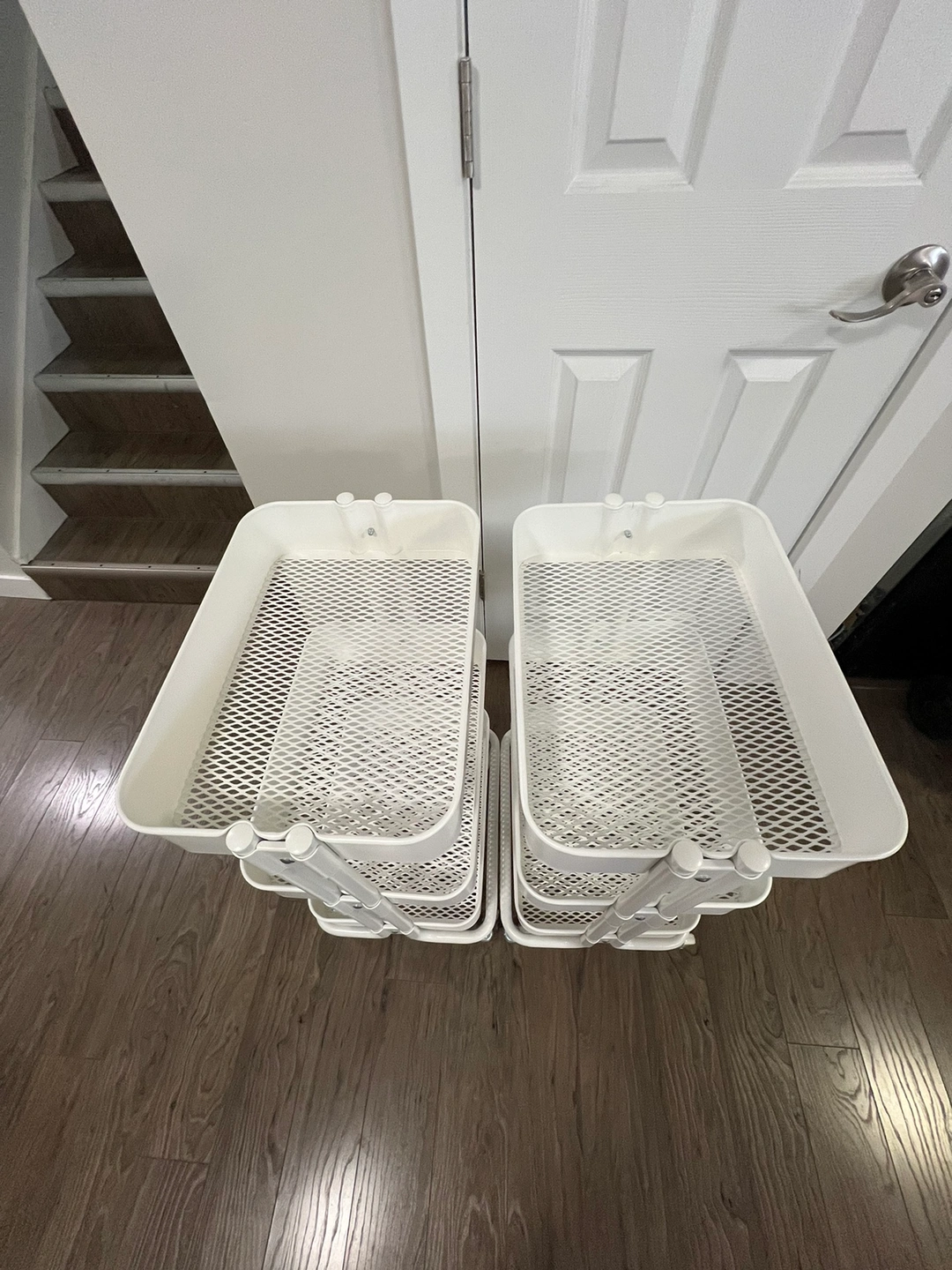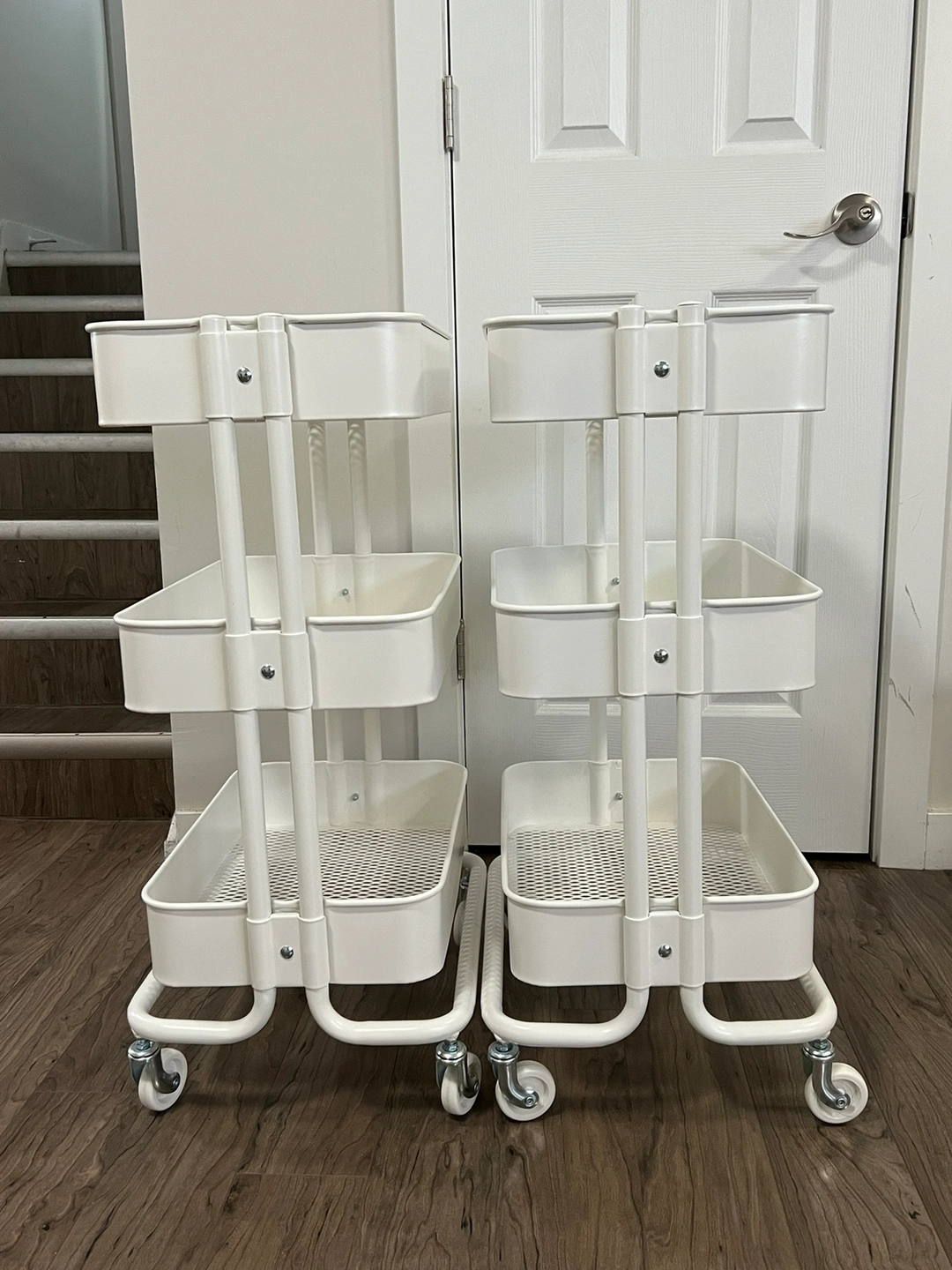 I am selling 2 white Ikea carts for $25/each. It is slightly used. All parts are in a box as well as the instruction manual.