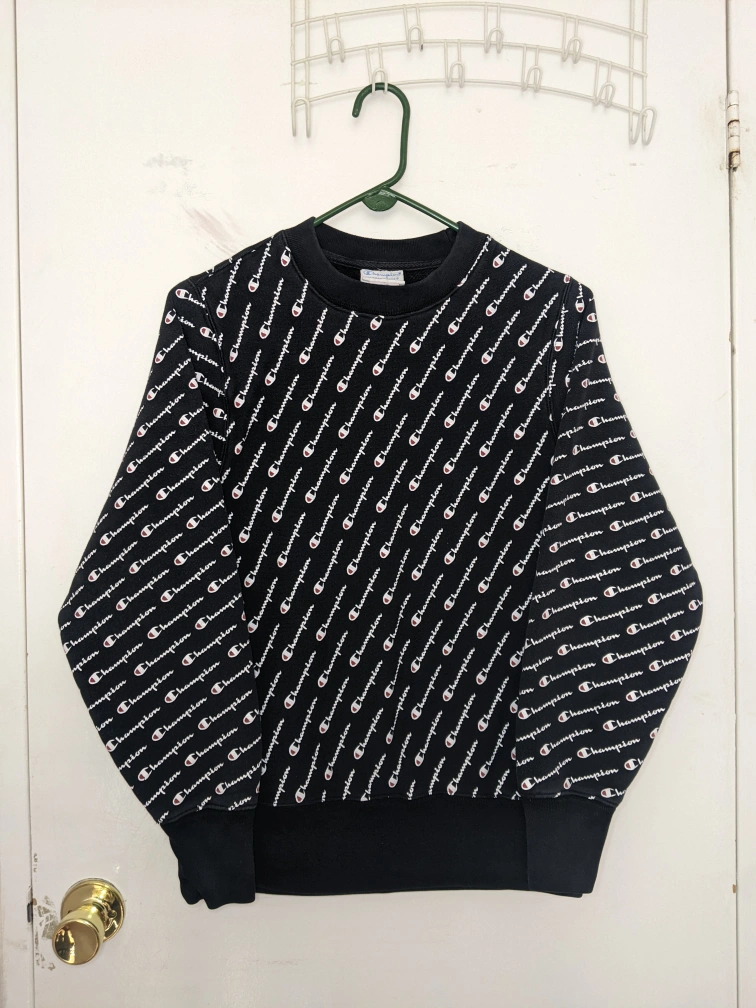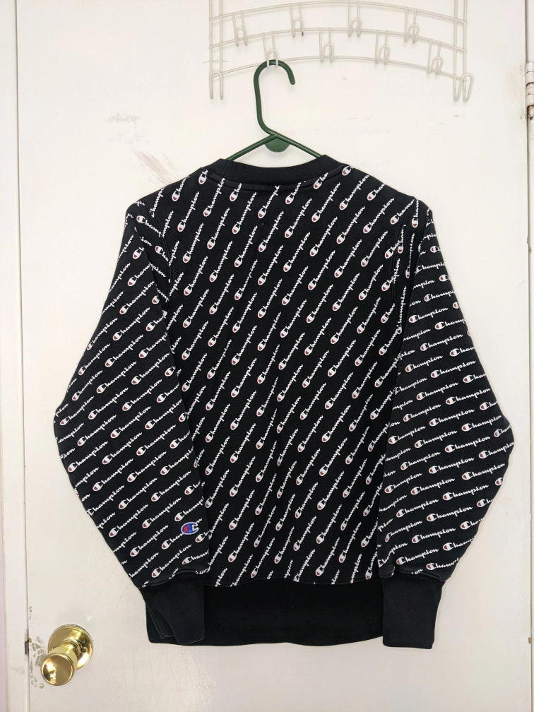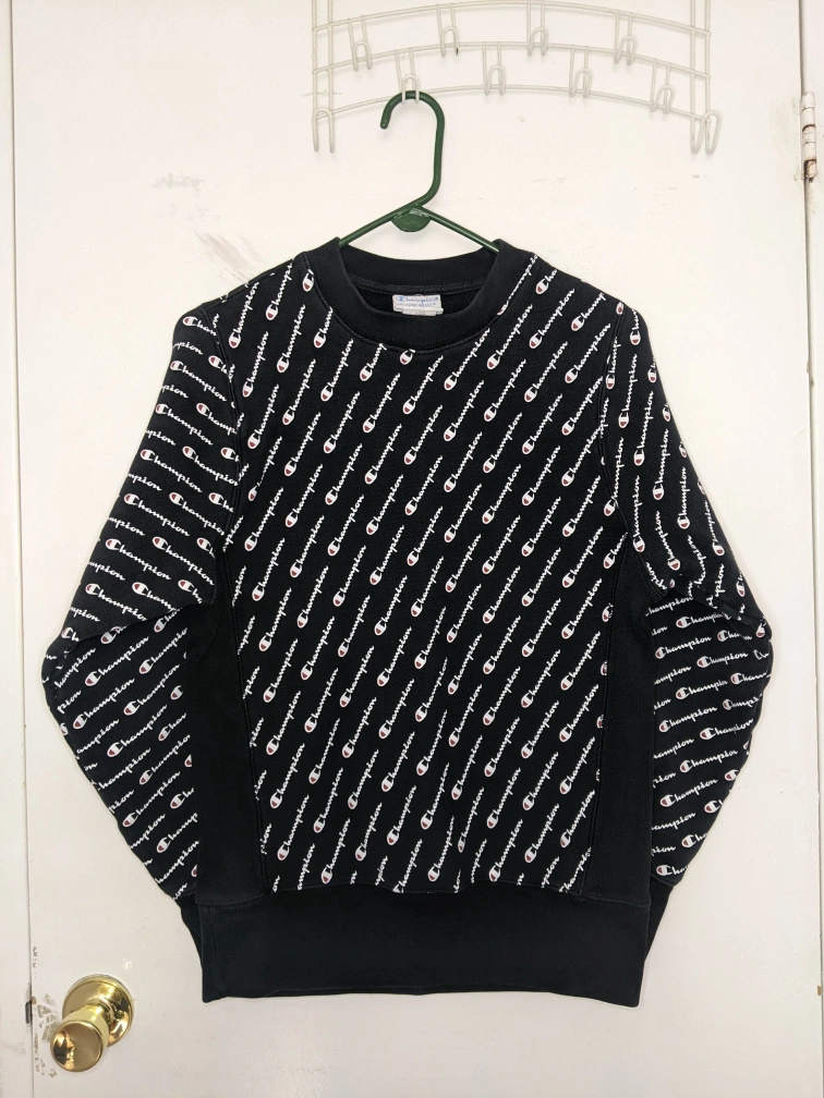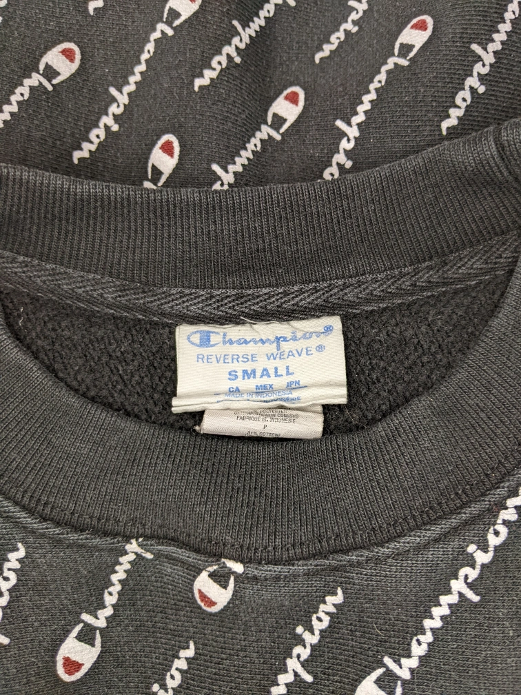 ⚽ Champion Men's Weave Crewneck Sweatshirt Size Small All Over Logo AOP Black