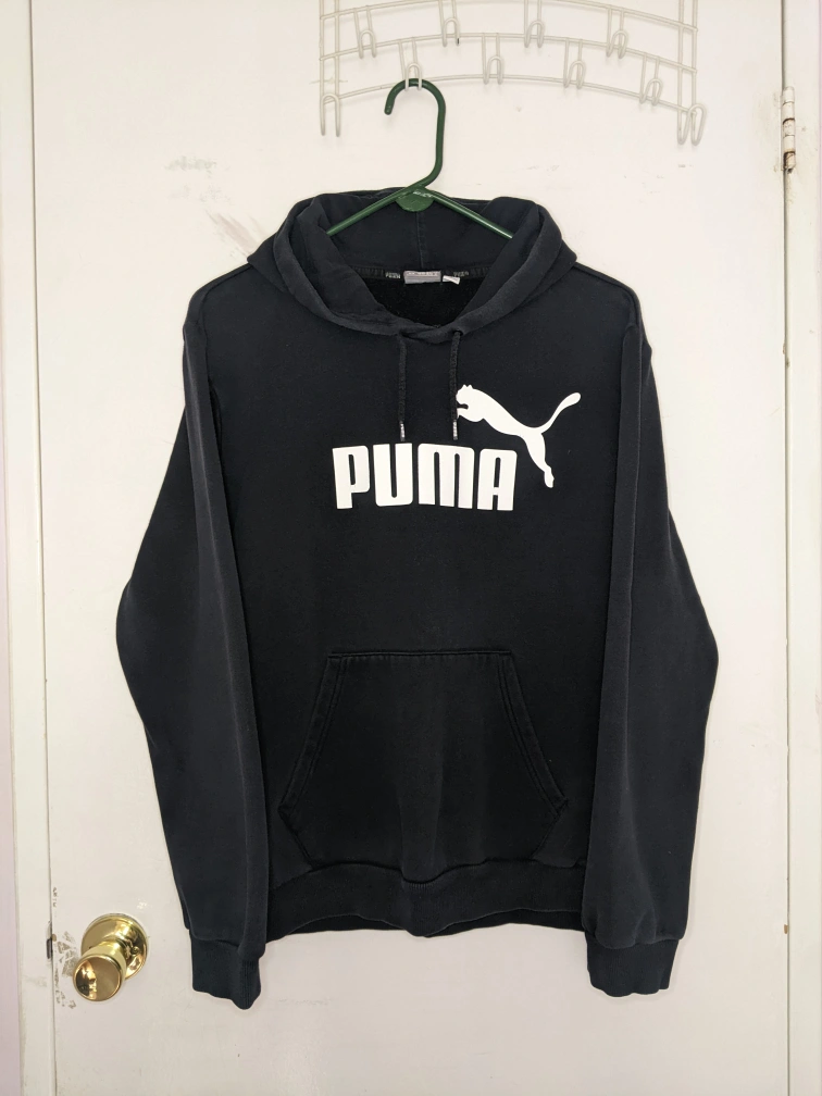 ⚽ Puma Men's Activewear Black Essentials Medium Pullover Hoodie Sweatshirt Big Logo
