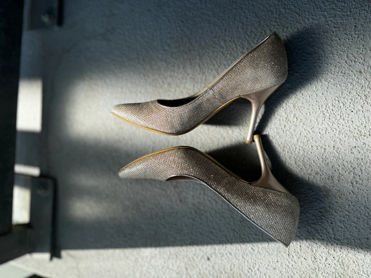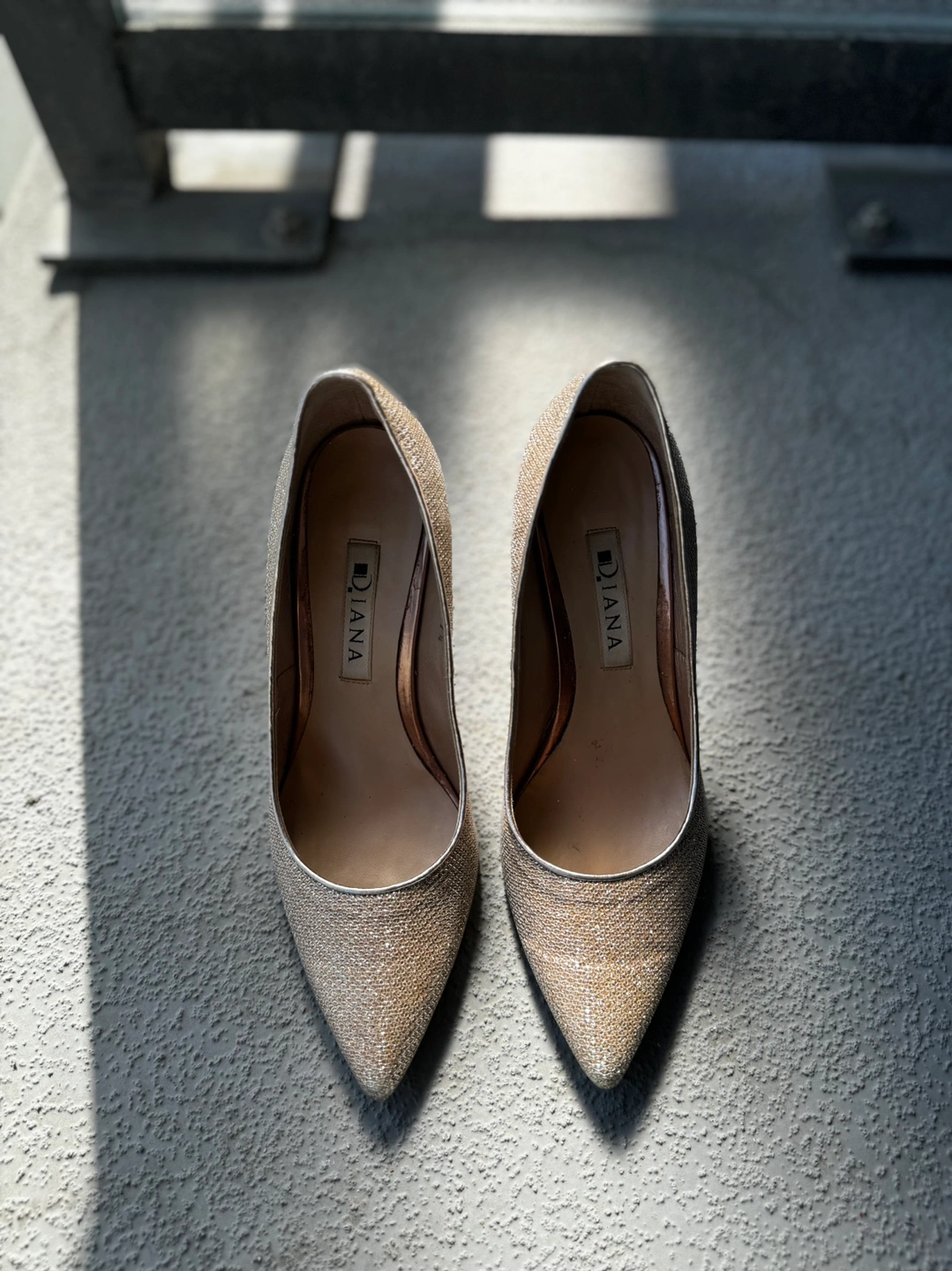 Made of Genuine Leather sparkling high heels, made in Japan. In excellent used condition, very comfortable design, perfect for parties and night out.