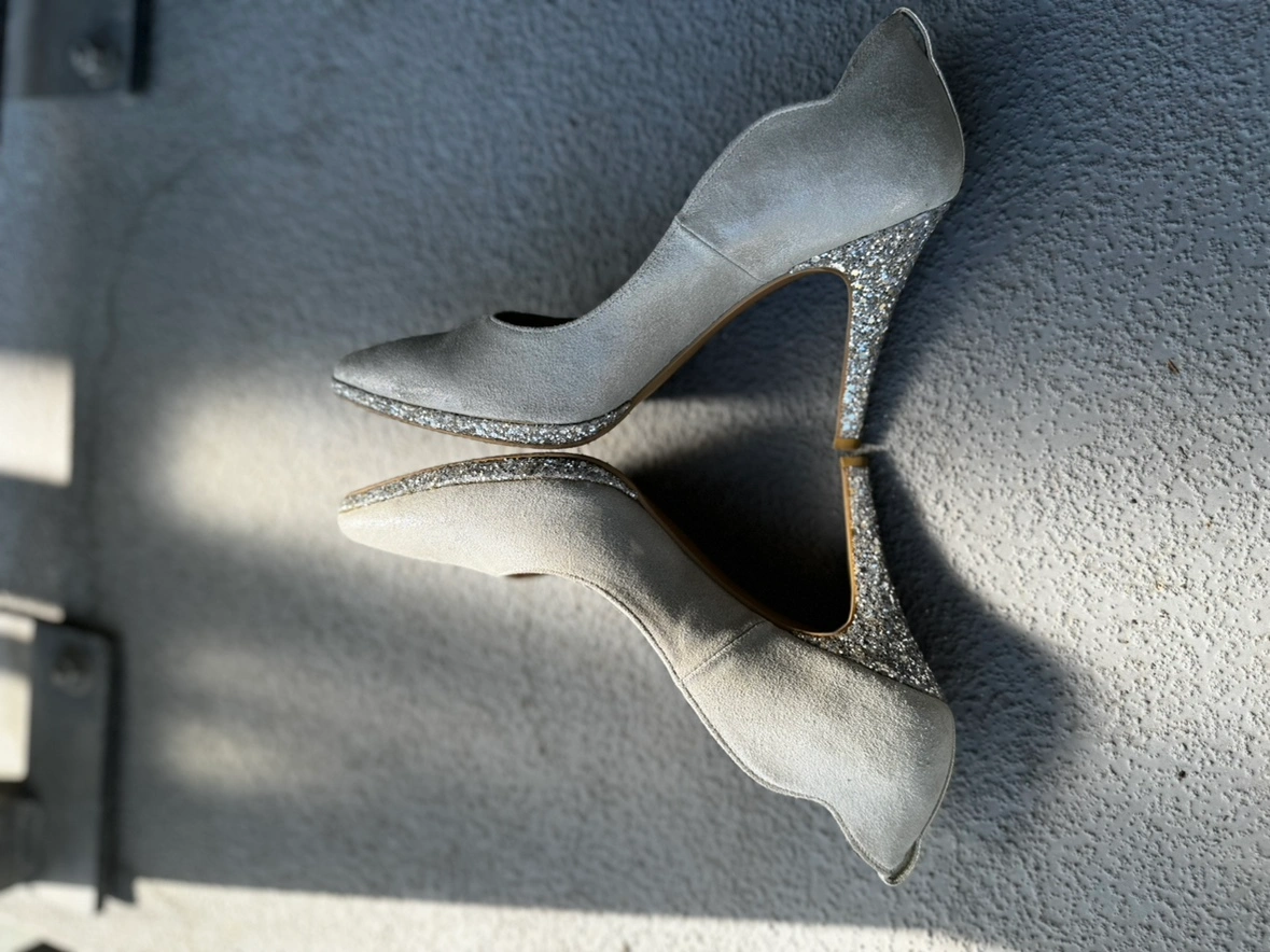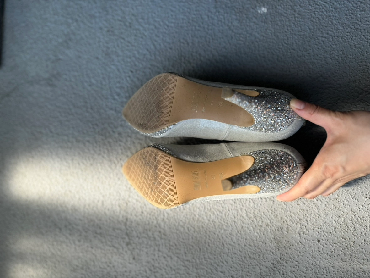 Made of Genuine Leather sparkling high heels, made in Japan. In excellent used condition, very comfortable design, perfect for parties and night out.