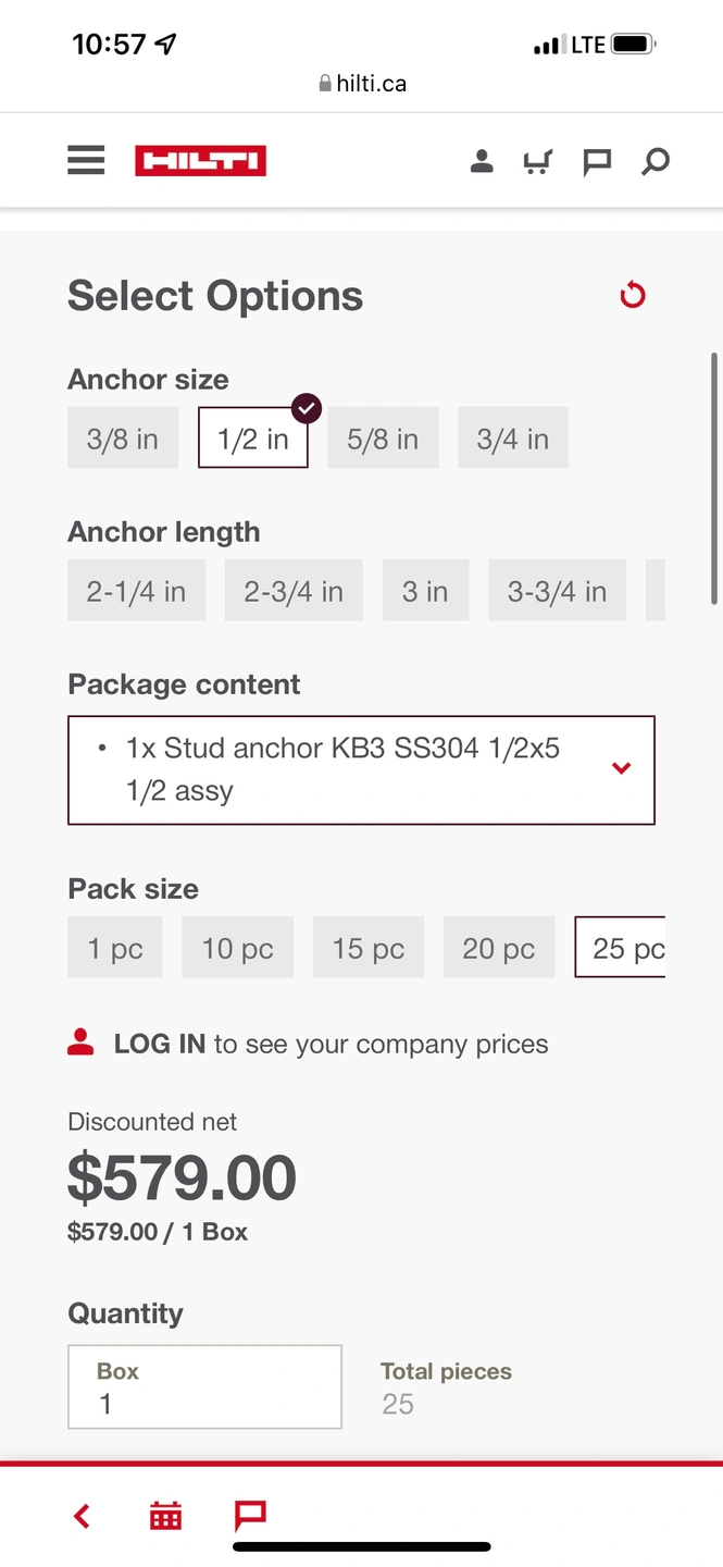 Hilti Anchor Bolts