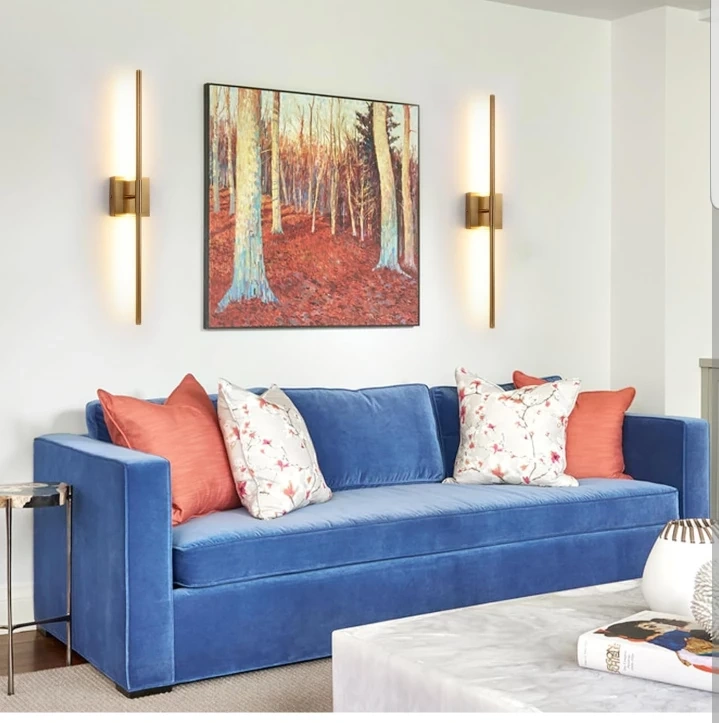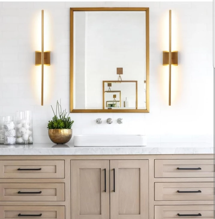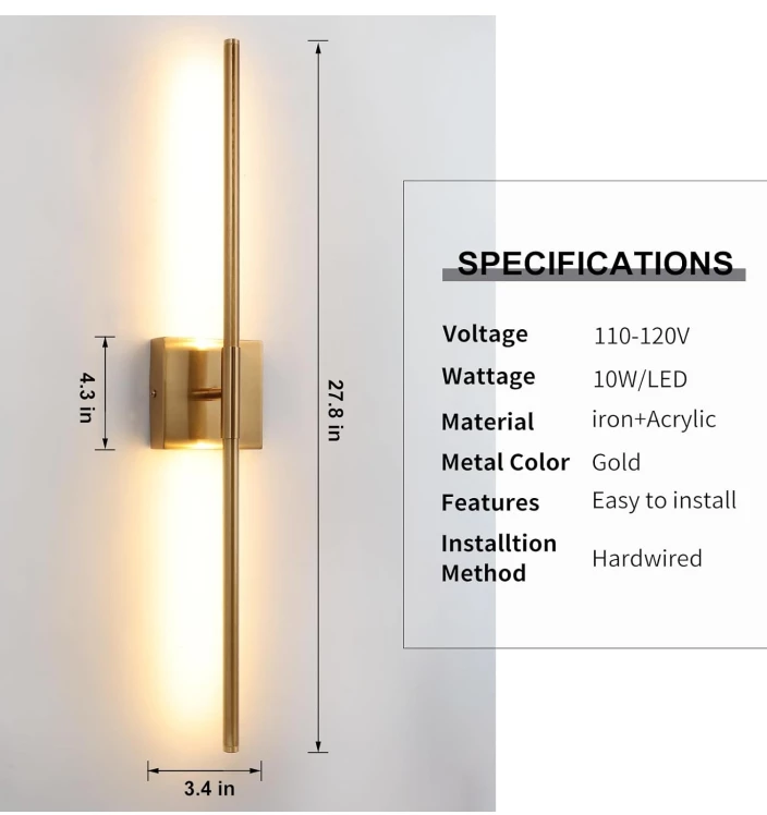 Wall Sconces Set of 2 Brushed Brass Gold LED Integrated 3000k 12W Wall Light Modern Metal Sconces Wall Lighting with Metal Linear Rod Luminaire Mural Indoor Wall Lamp for Bedroom Living Room.