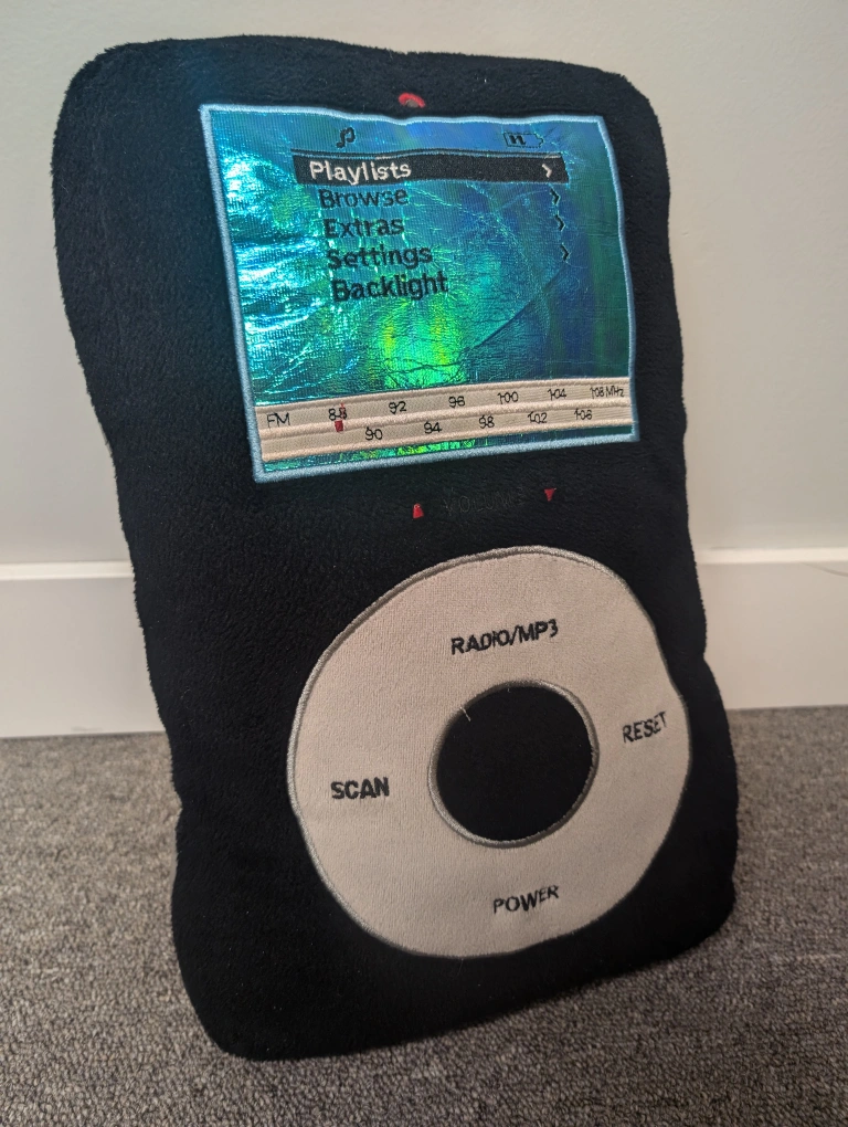 Do you want to spice up your plushie collection? Give your Jellycats and Squishmallows a nice gift to enjoy being beside? Well look no further than this IPod-shaped radio/mp3 player stuffed plushie (2007)!