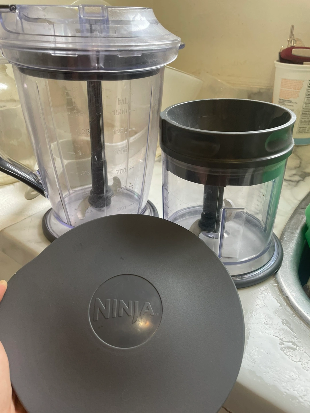 Hi, these are containers for the ninja blender (see last pic), BUT the top part (the motor) is missing.