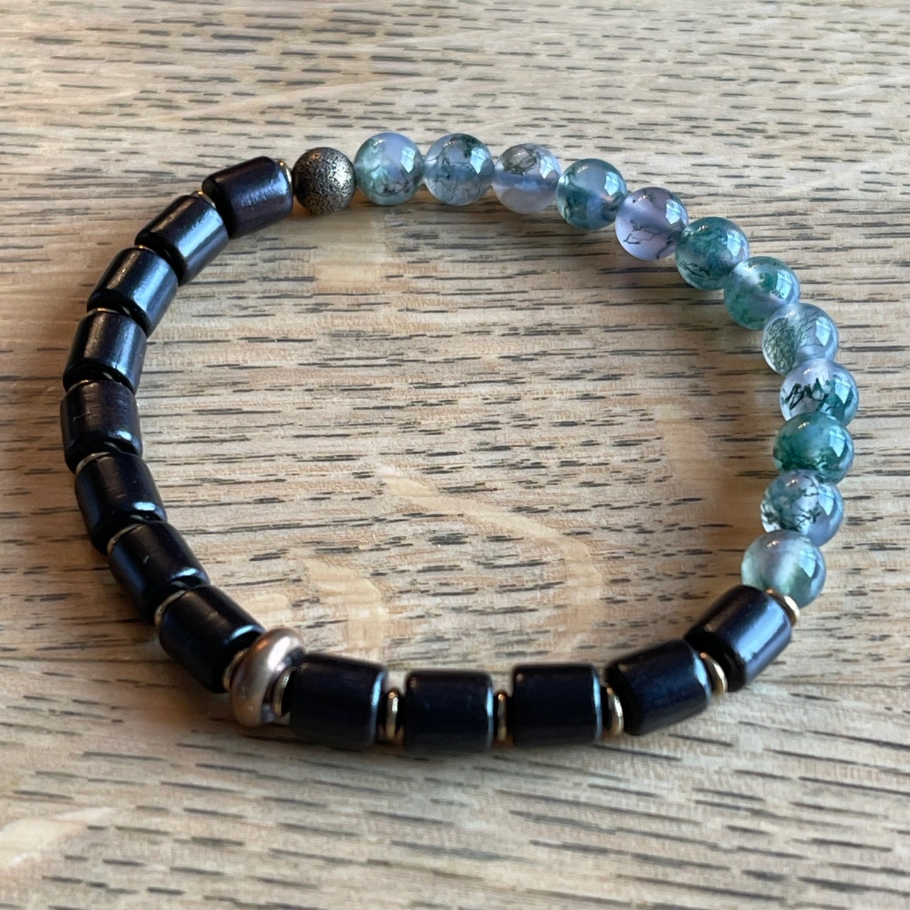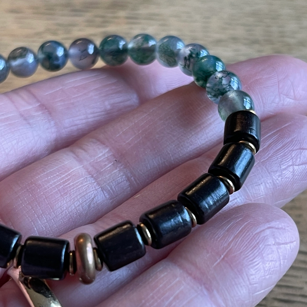 Moss Agate, a heart chakra stone, it is known as the crystal of gardeners and agriculture. Also, it is an optimistic stone that promotes peace and emotional stability.