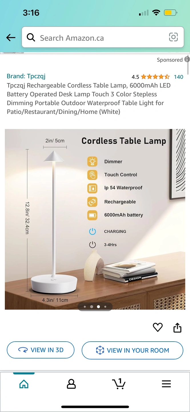 485Tpczqj Rechargeable Cordless Table Lamp, 6000mAh LED Battery Operated Desk Lamp Touch 3 Color t Dimming Portable Outdoor Waterproof