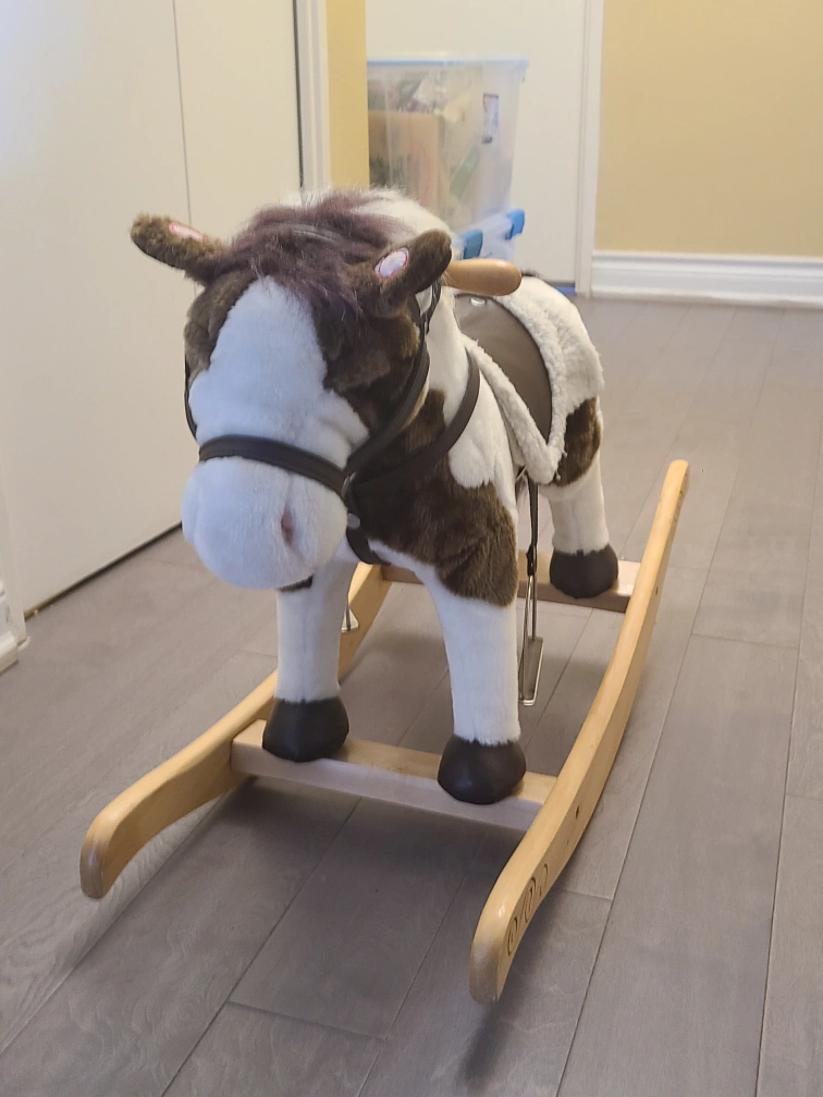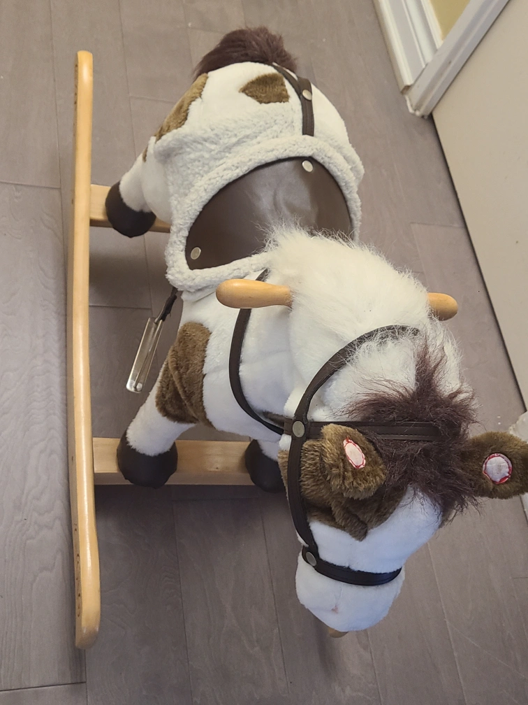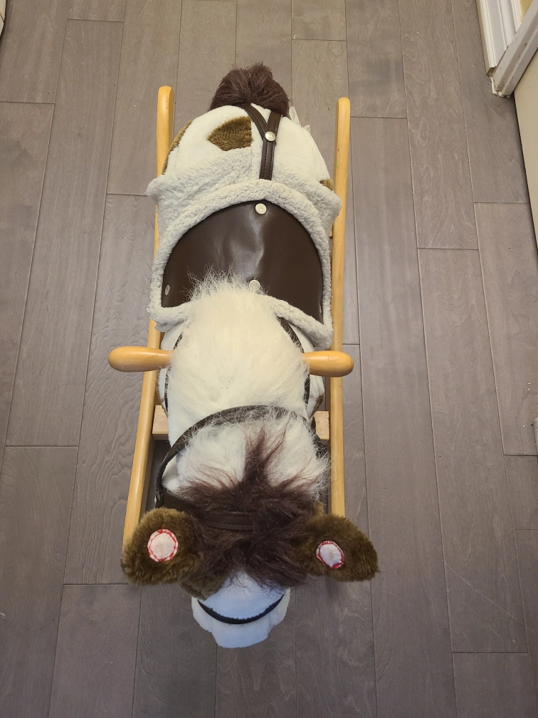 Brown and white rocking horse in good condition! Great for toddlers and small children