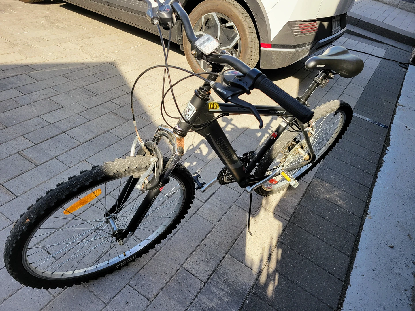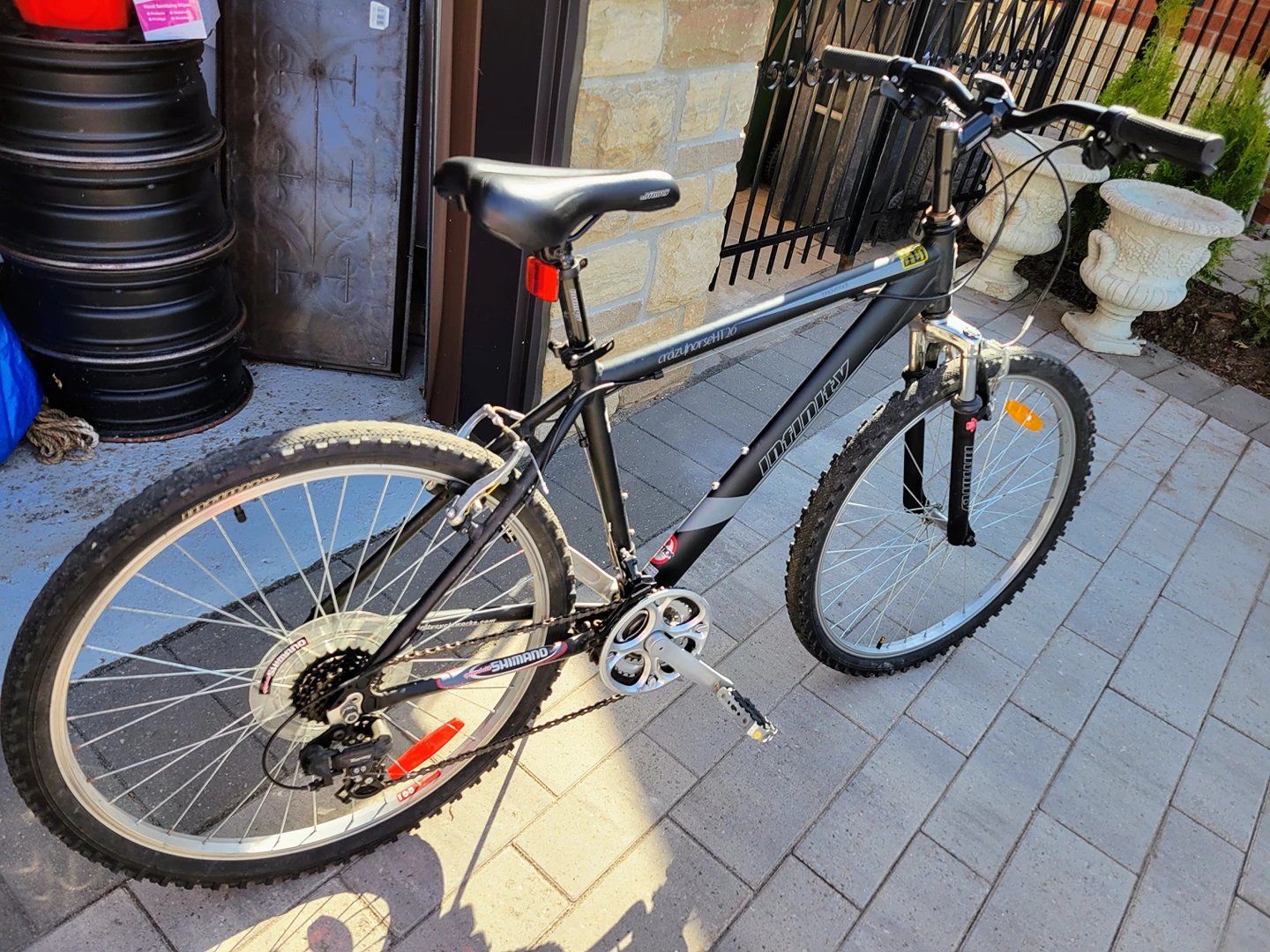 26" Bike frame in prefect condition. One gear is bent (hence the price) so I just dont use that gear. otherwise bike performs perfectly. Can be repaired.