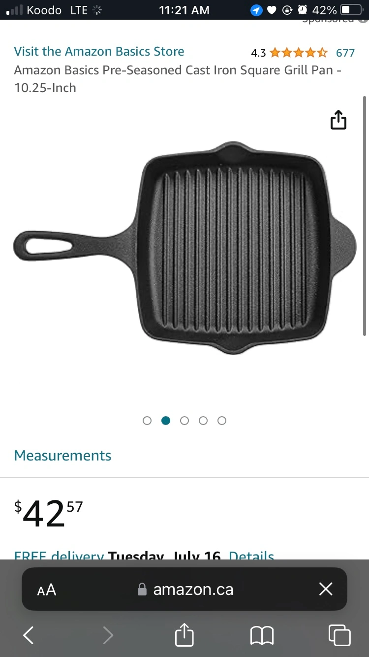 Square Cast Iron with Grill Lining (comes with silicone cover!)