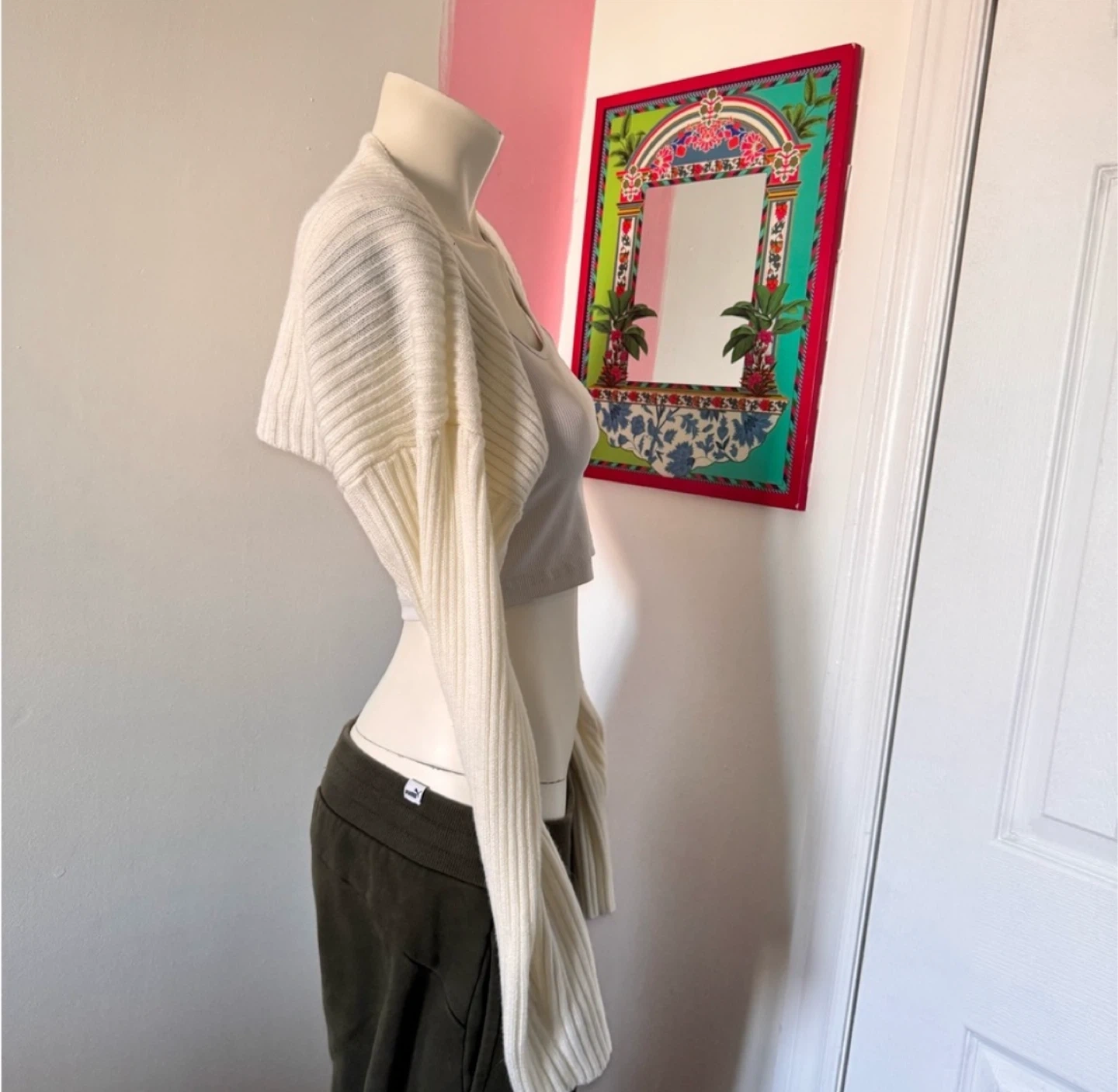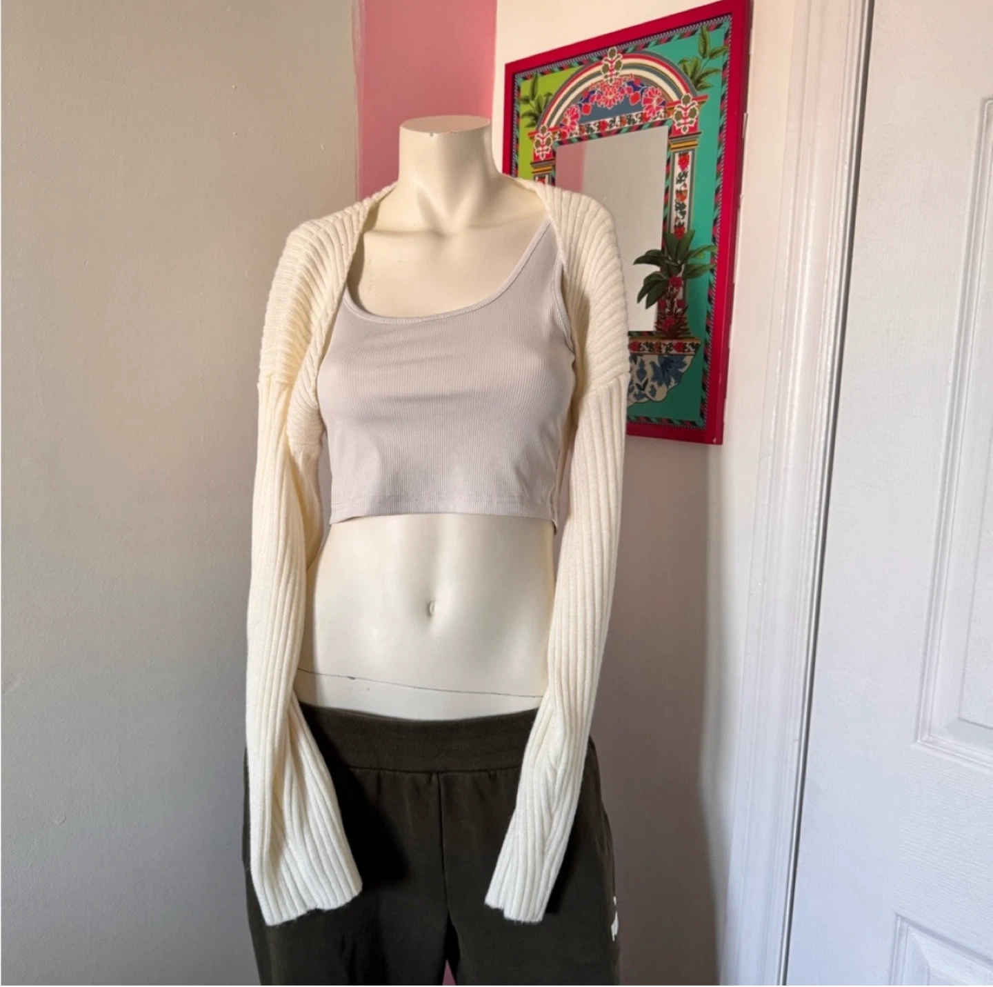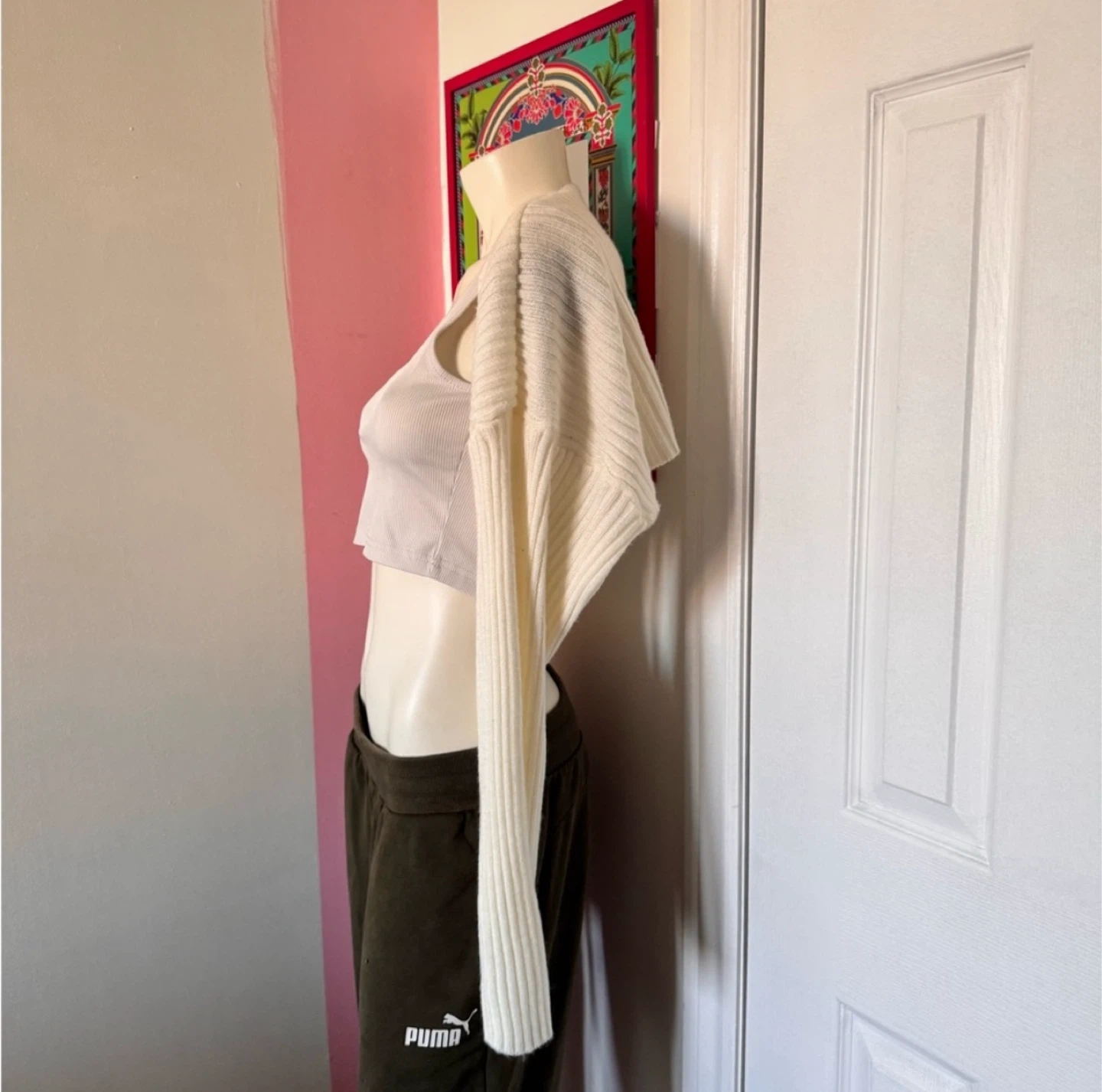 Cropped Cream Shoulder Cardigan