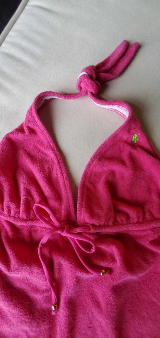 Never worn. Intent to wear, washed. Smaller fit. Terry cloth material. Super cute on! Halter tie.