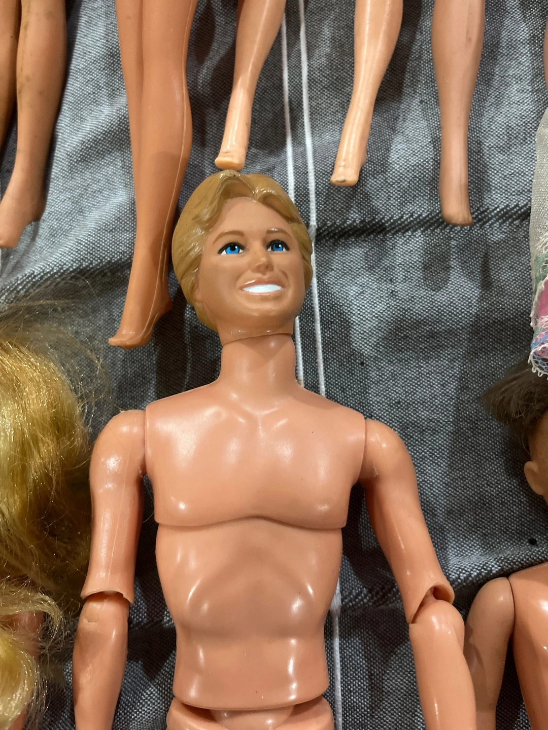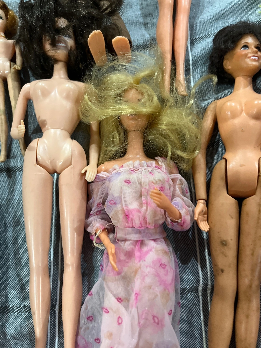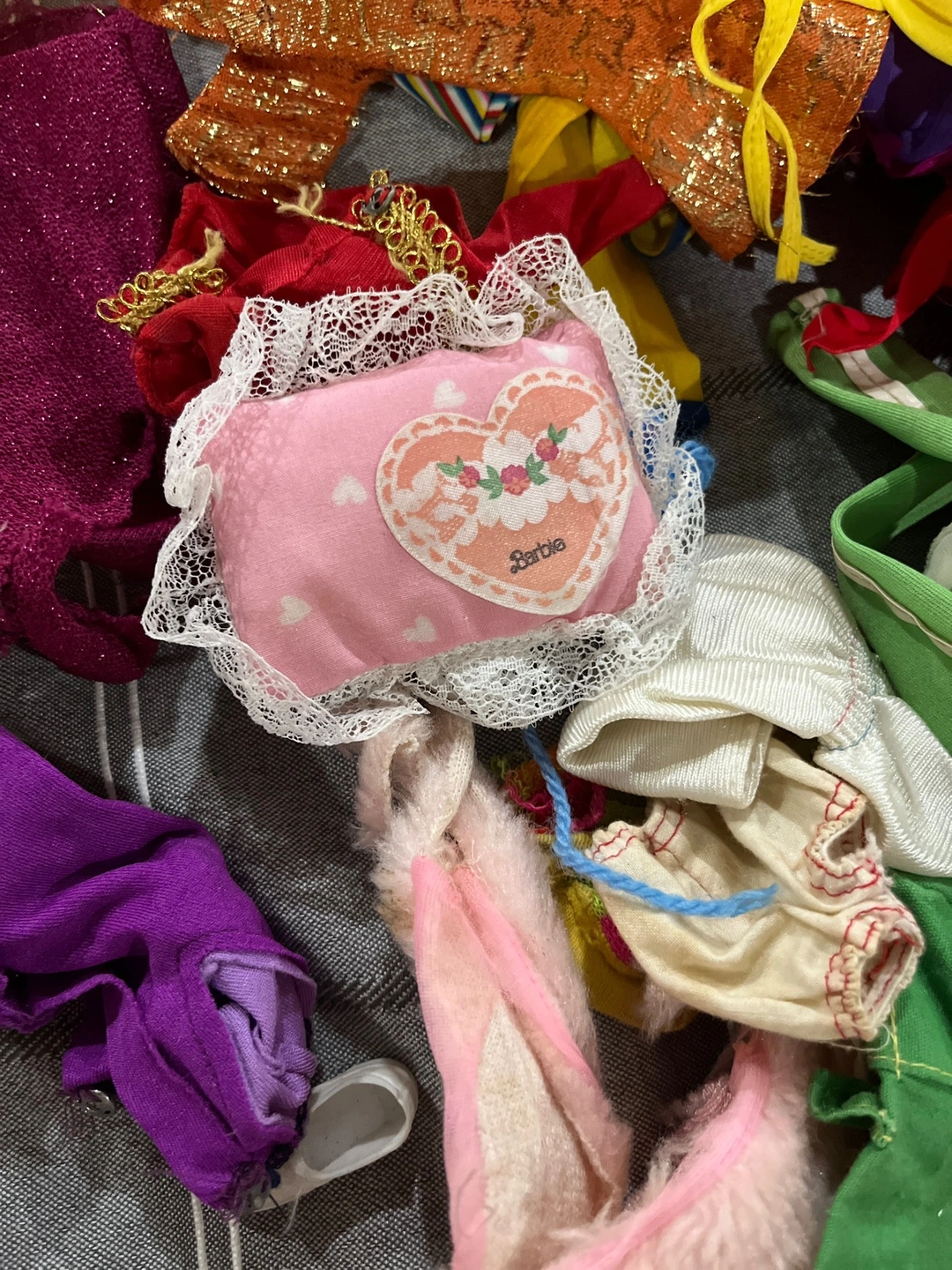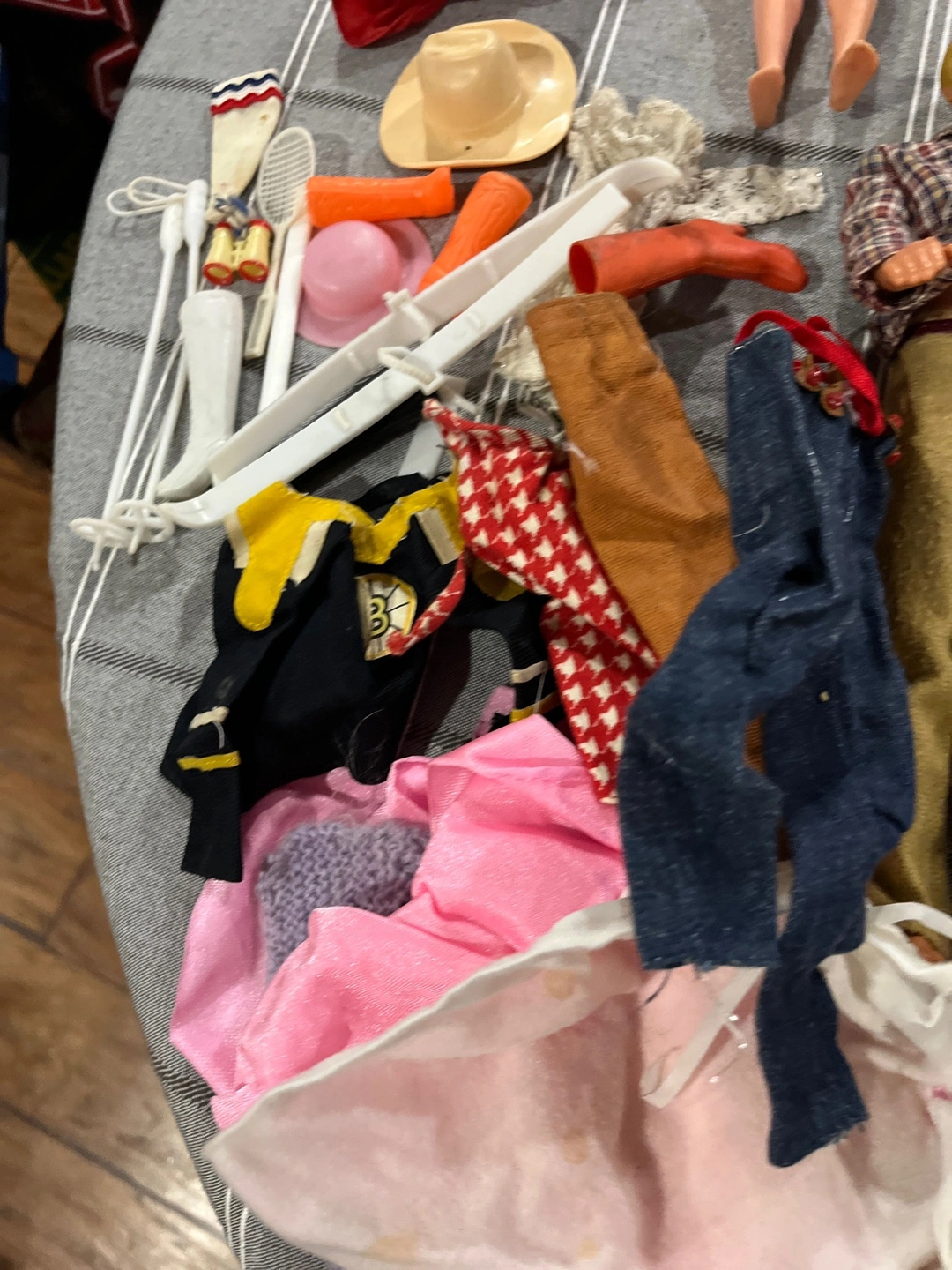 45Very good deal here. Just dozens of Barbie clothes, dolls, accessories. Vintage from the 1970s, with some from the 1960s and 1980s. There’s also a scarecrow mego doll from wizard of Oz. An Annie doll. Some Ken dolls too.