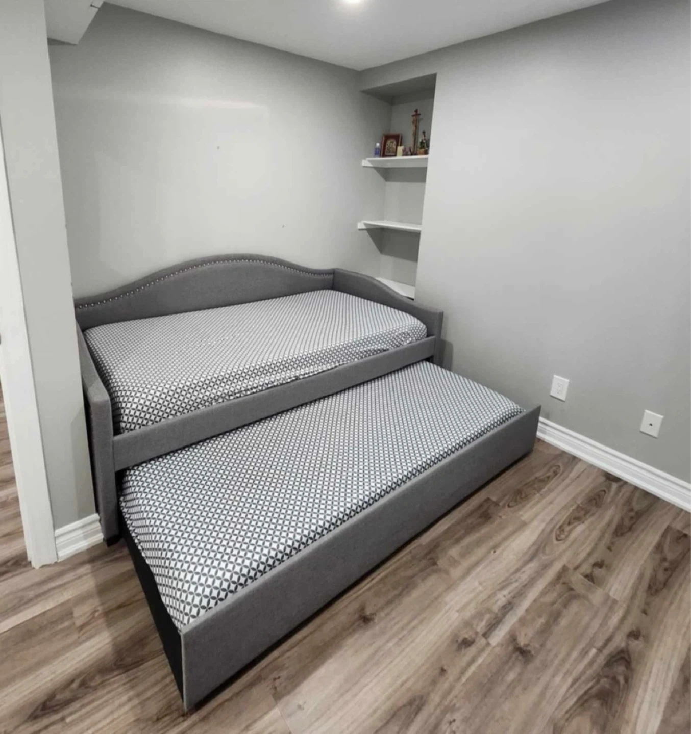 Grey Upholstered Daybed with Trundle. 2 Mattresses included!