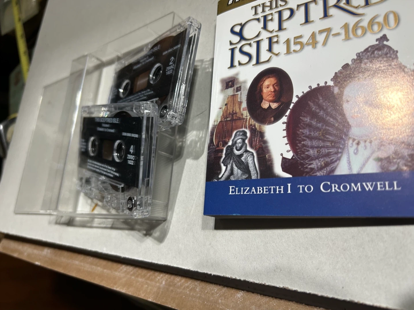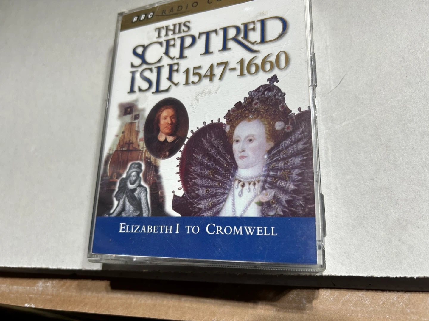 This Sceptred Isle cassette tape collection covers the period from Elizabeth I to Cromwell. It's part of the BBC Radio Collection. Includes original case and cassette tapes.