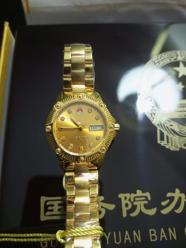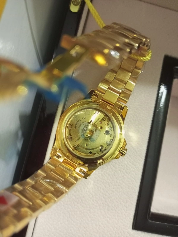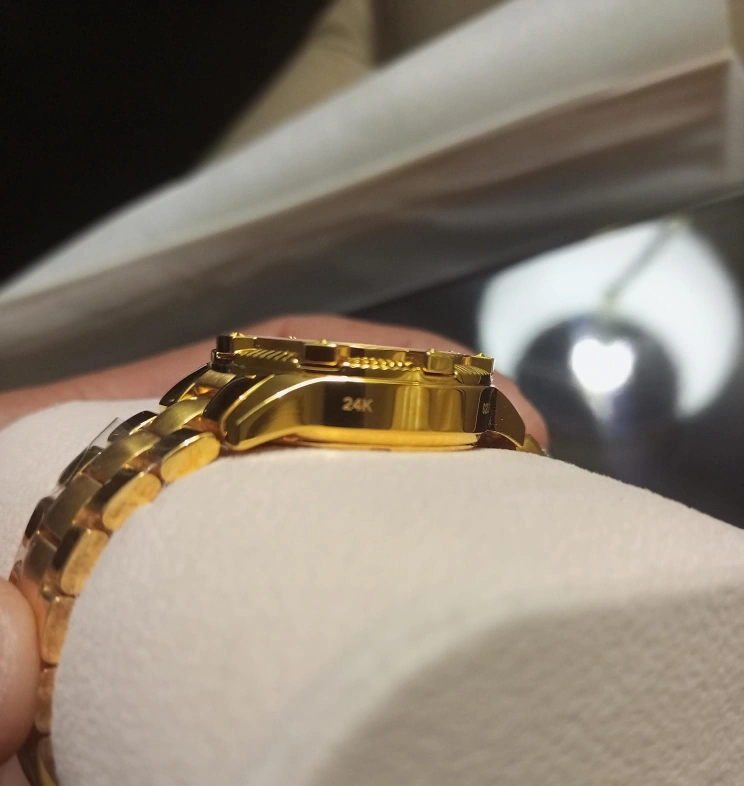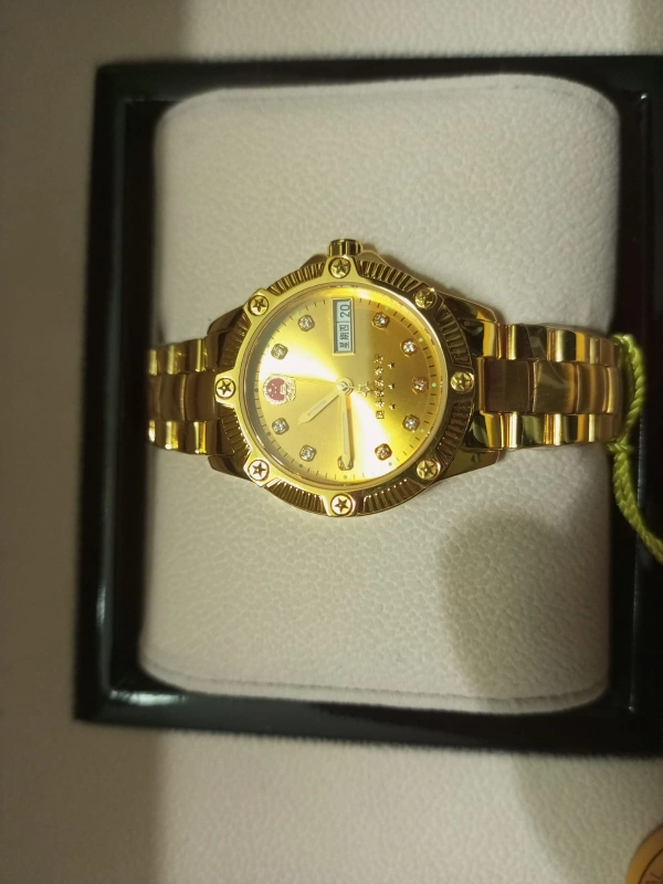 Looking for Good offer open to offer I'm selling a pure form of 24K(AU) Gold plated watch fully Automatic movement with swarovski Diamonds with, all testing certifications & licenses are with this watch, in original packing 24k (au) Gold swarovski Diamonds 24k Gold mark on watch license number on watch very beautiful & unique & antique piece for special occasions only serious persons can contact me please