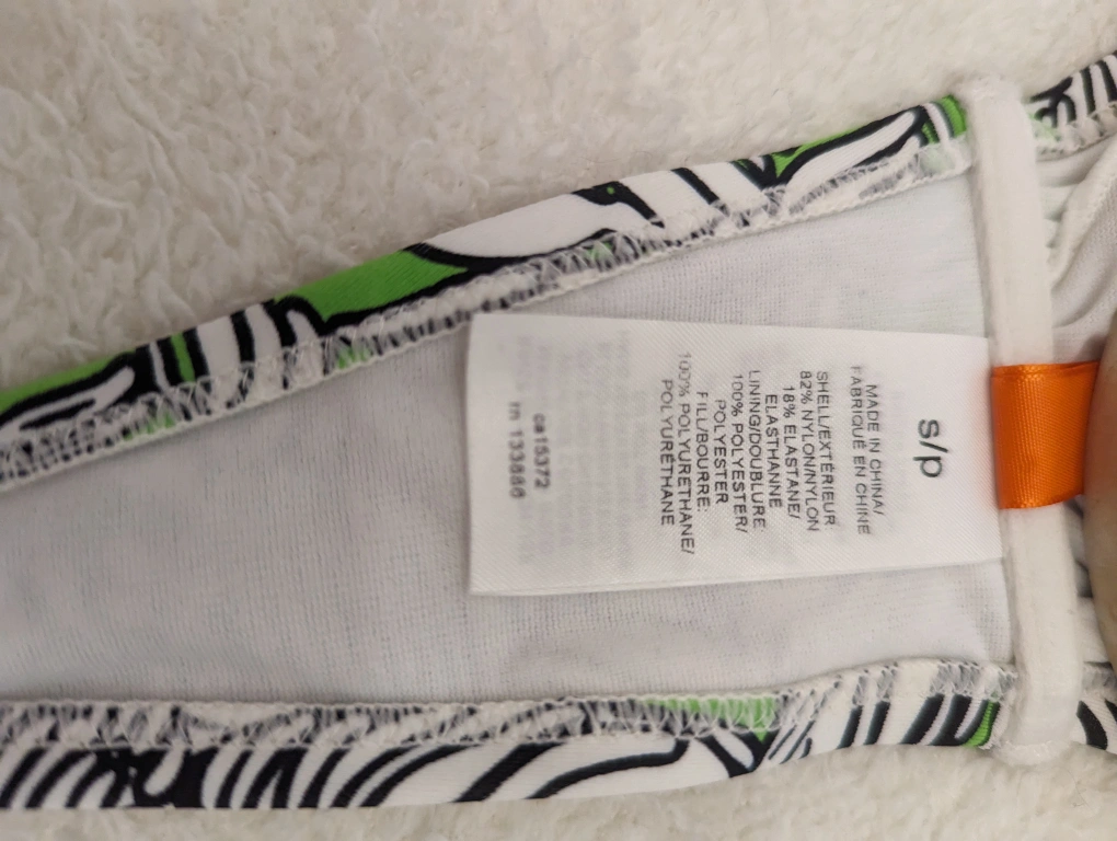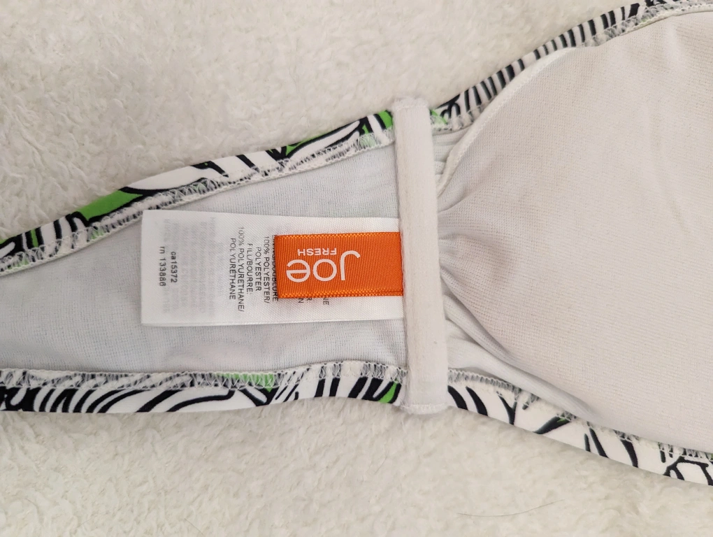 Super cute size small Joe Fresh Bandeau bikini top in green, white and black. Worn a handful of times but still lots of life left!