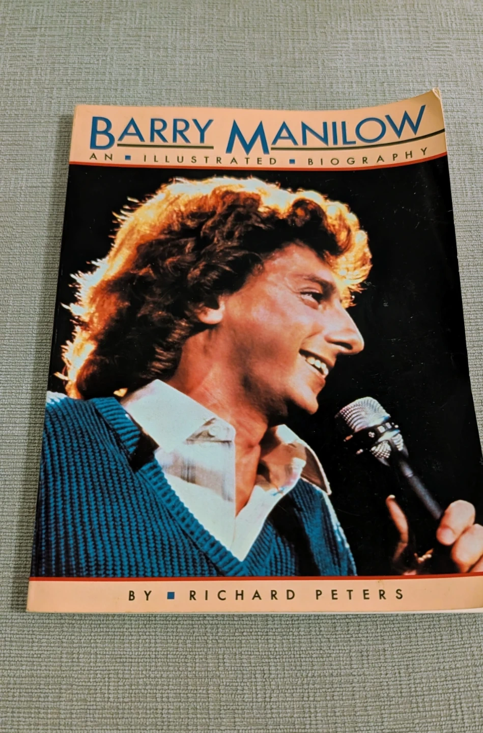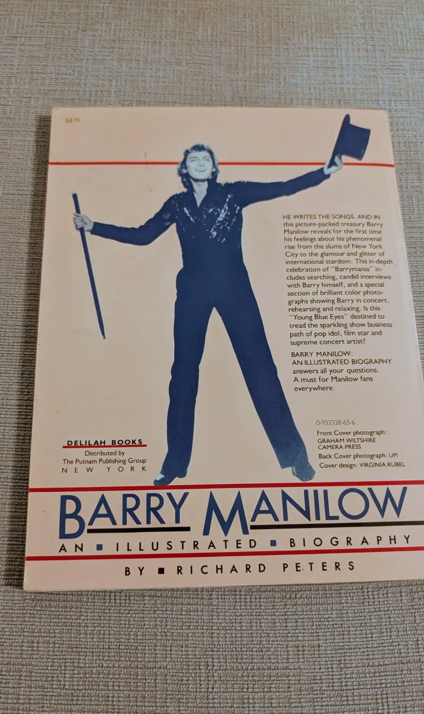 This is Barry Manilow: An Illustrated Biography by Richard Peters. It includes photographs and text about Barry Manilow's life. Published by Delilah Books.