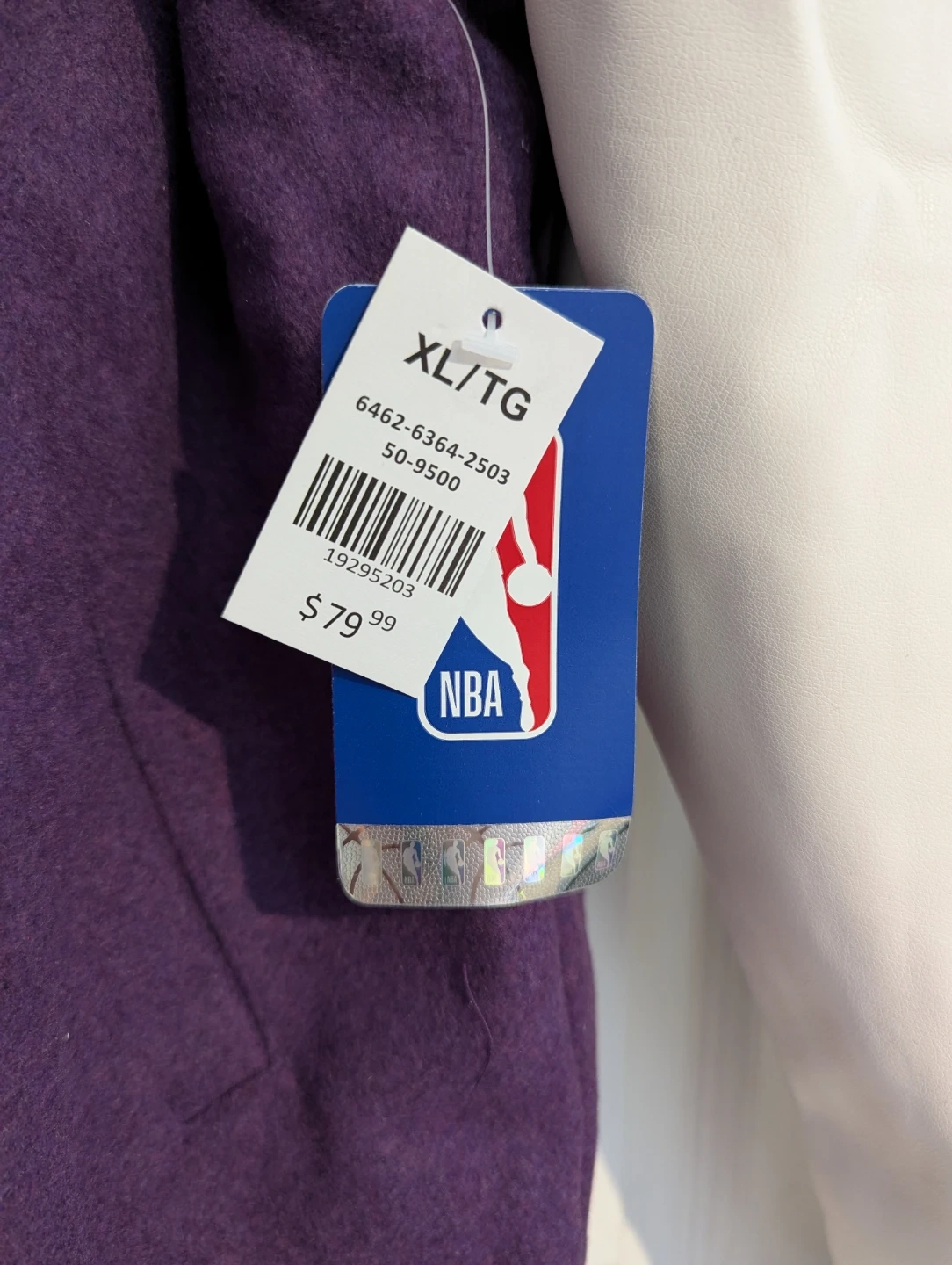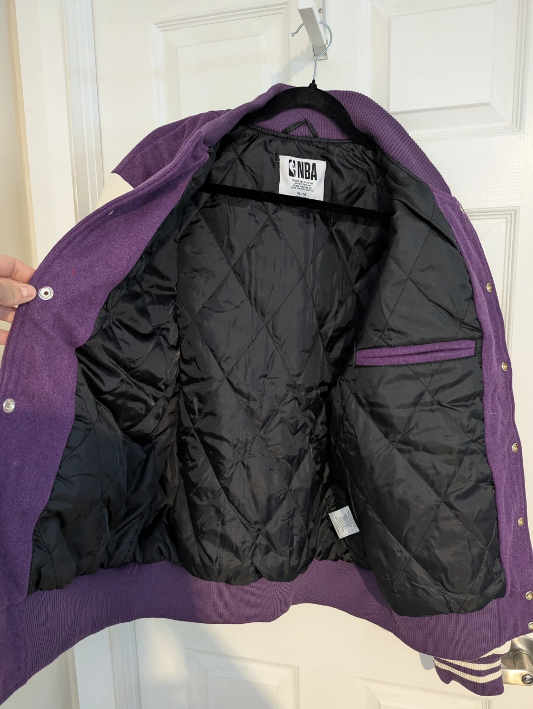 Brand new! NBA Los Angeles Lakers jacket. Purple wool body with white faux leather sleeves. Embroidery detailing. Size men's XL.
