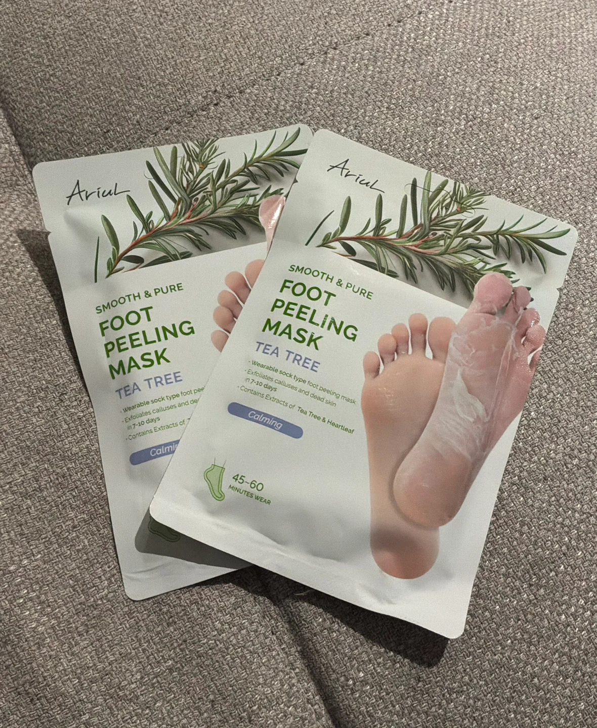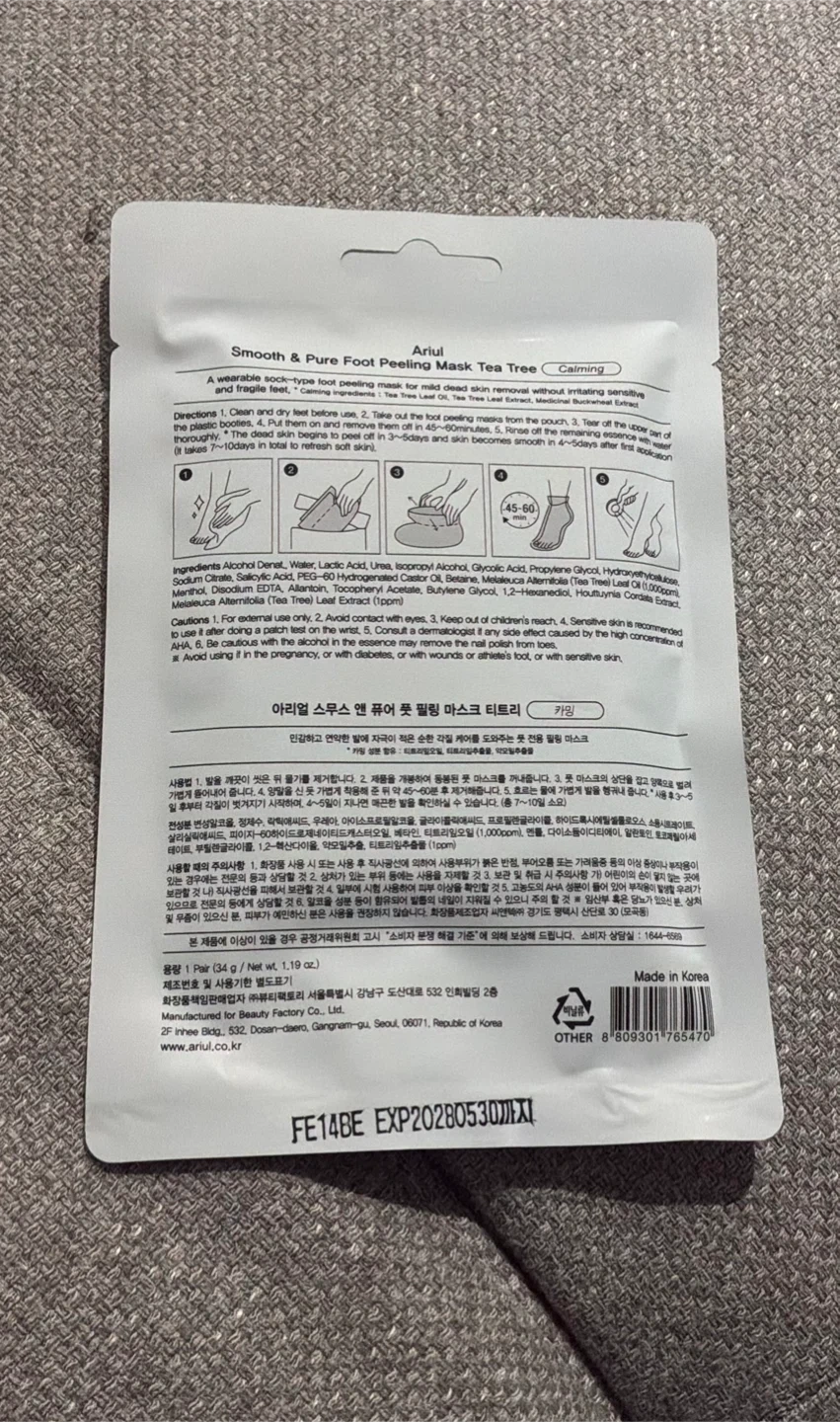 This wearable sock-type foot peeling mask uses Tea Tree extract to exfoliate calluses and dead skin. It's designed to help reveal soft skin in 7-10 days. The mask contains extracts of Tea Tree & Heartleaf.
