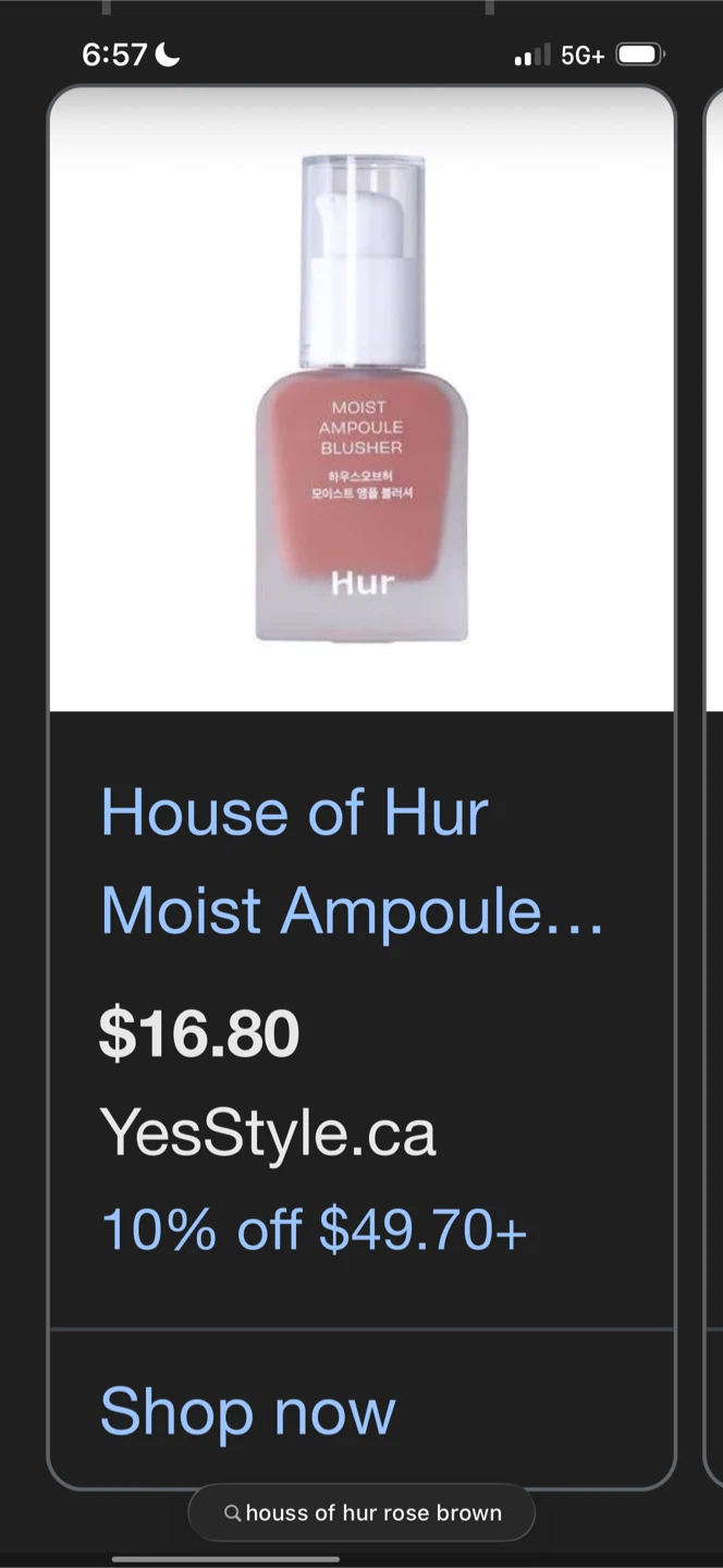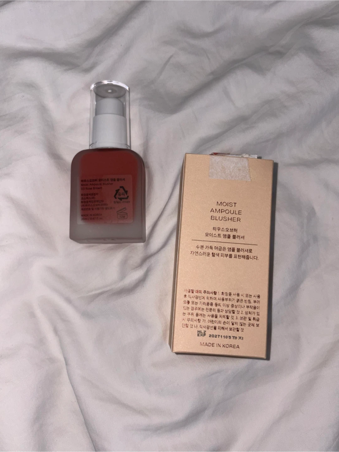 This is the Hur Moist Ampoule Blusher in the shade Rose Brown. It's a 20ml bottle. This blusher provides a moist finish to the cheeks.