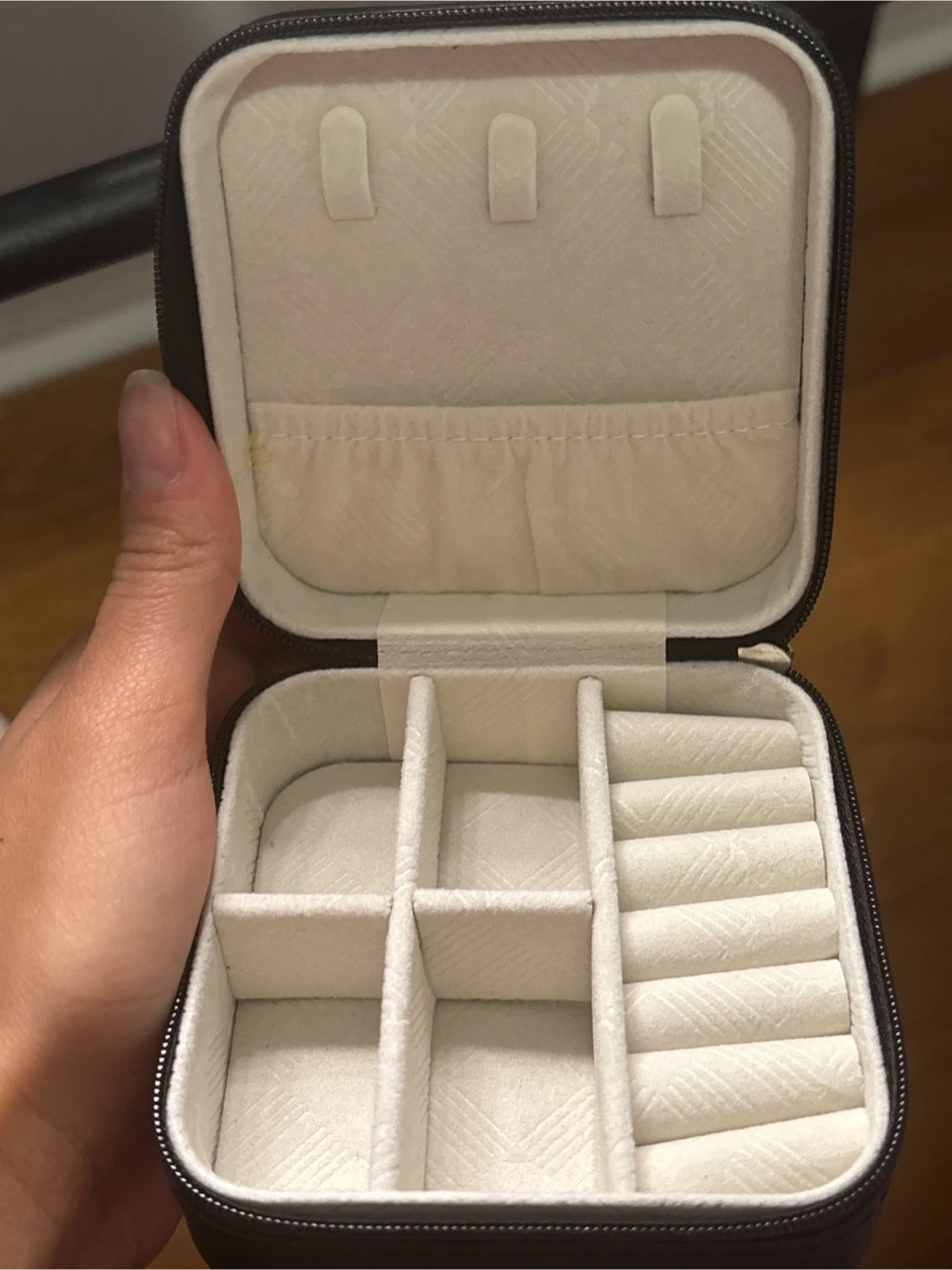 This compact jewelry organizer is perfect for travel. It features multiple compartments for rings, earrings, and necklaces, keeping your treasures secure. The soft interior lining helps prevent scratches.