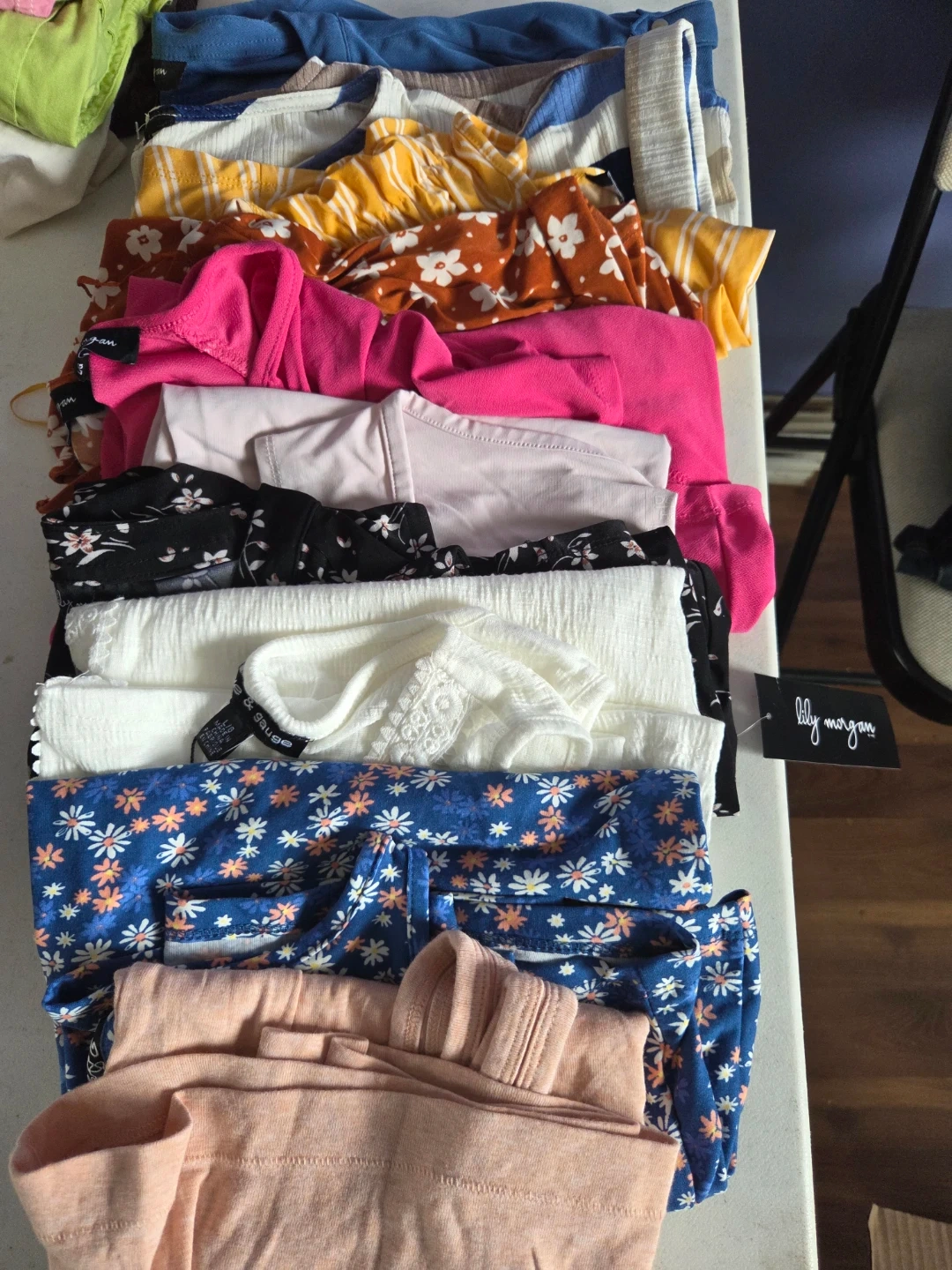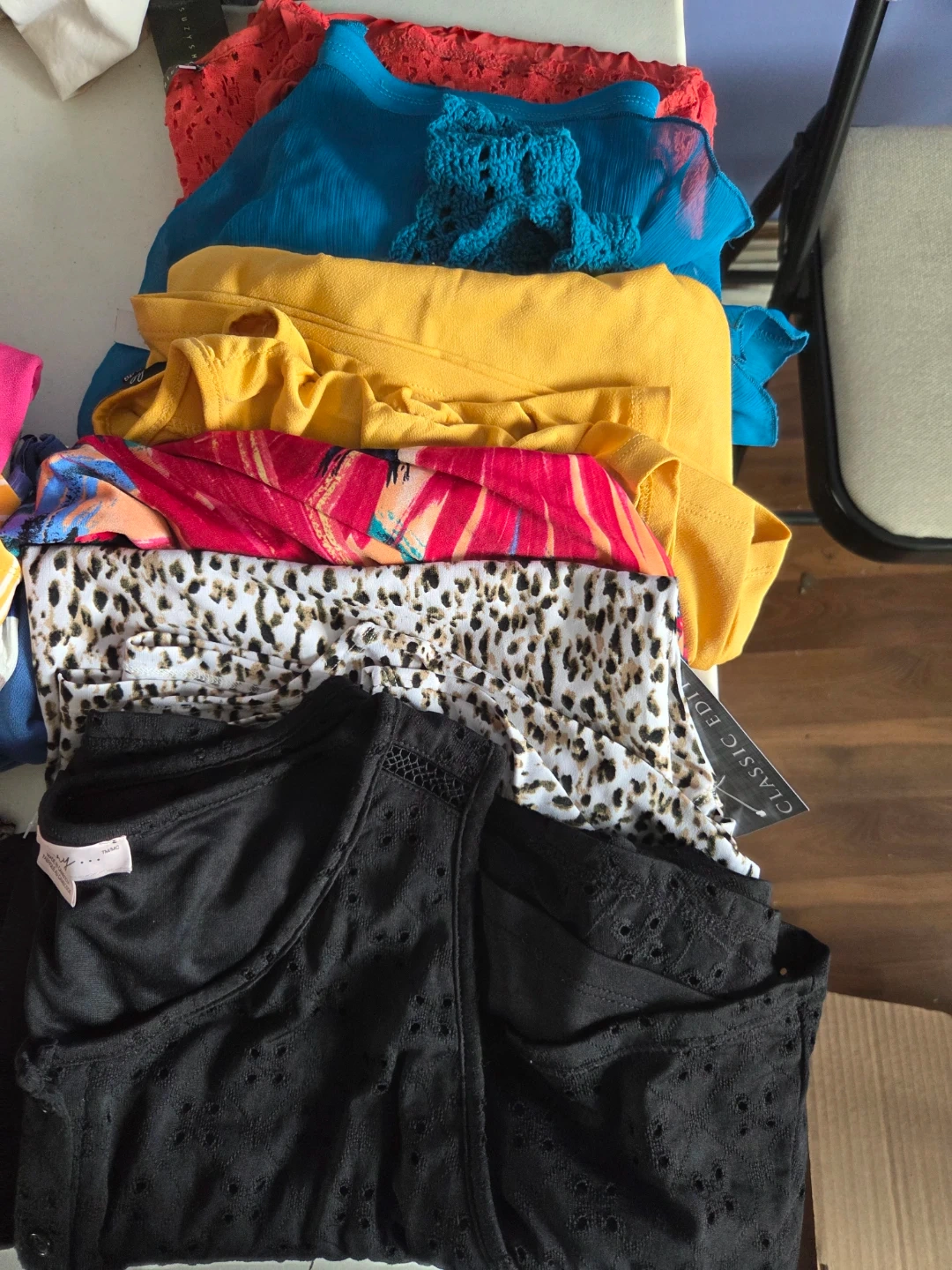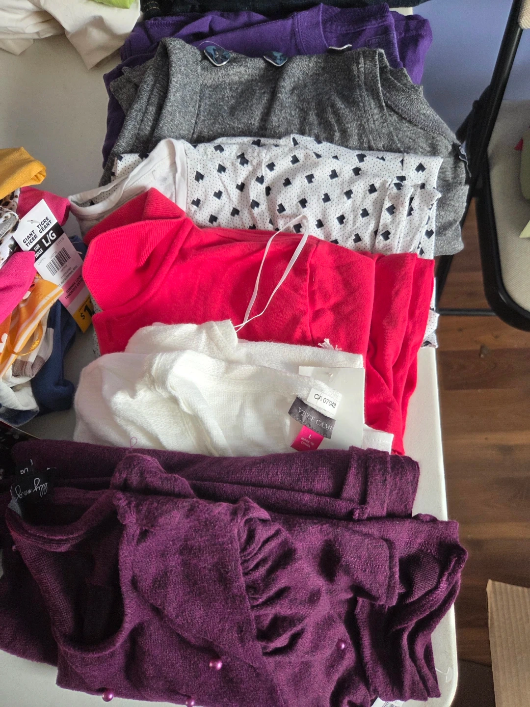 60Here's a mixed lot of women's tops in various styles, and colours! Mostly Large size. All items are in good condition and ready for a new home!