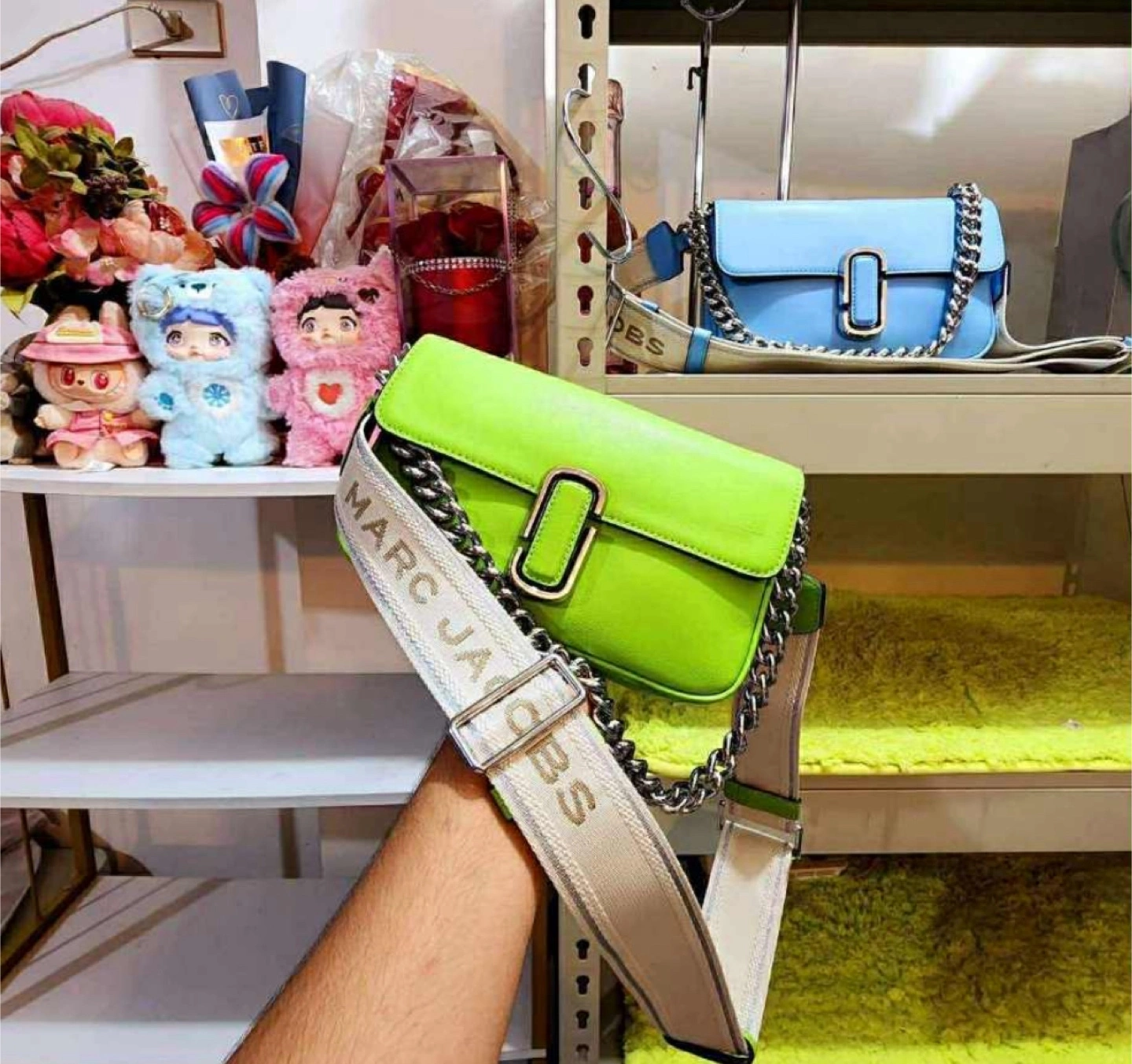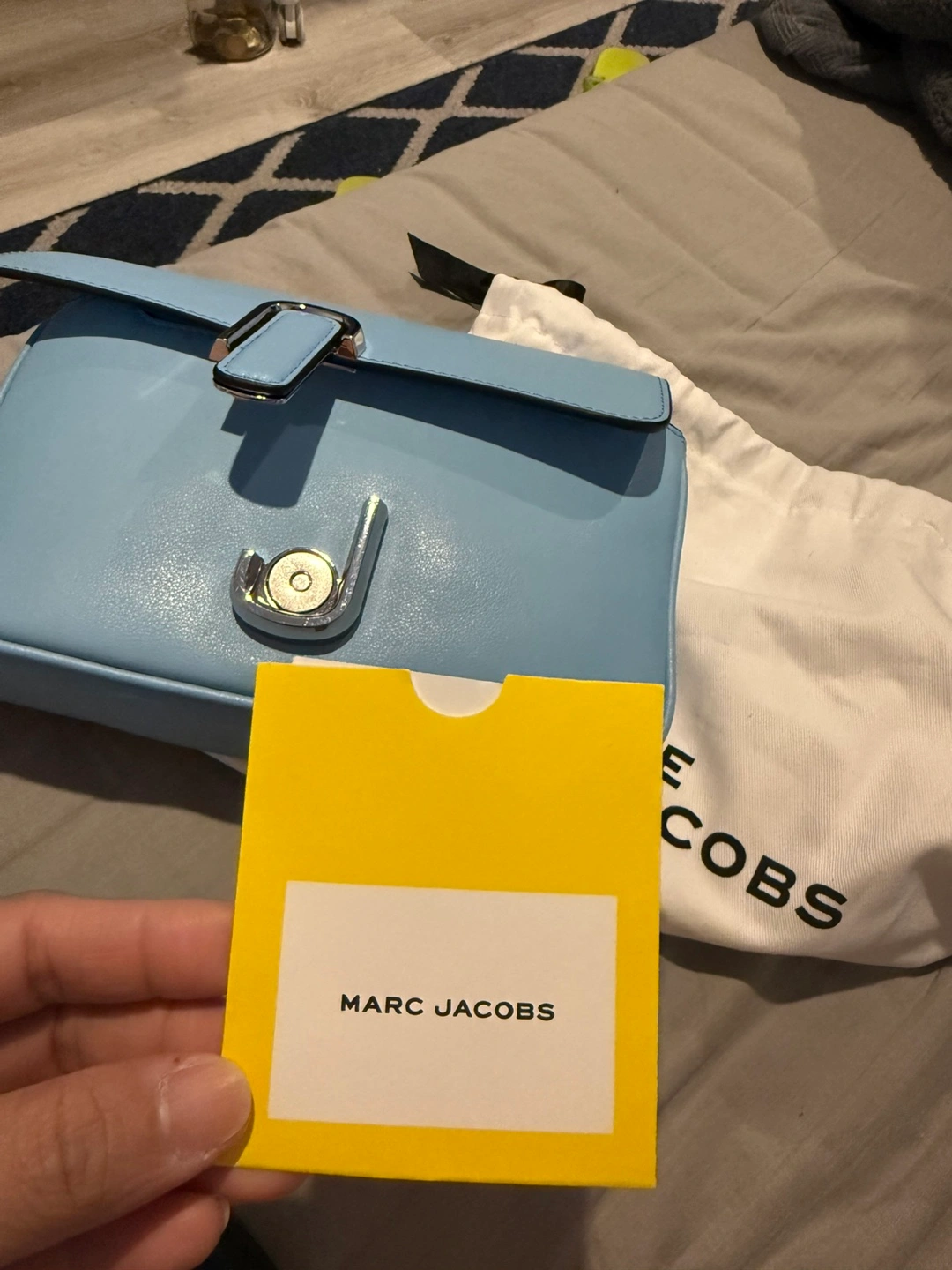Check out this vibrant green and blue Marc Jacobs The J Marc shoulder bag and handbag It's in great condition 10/10 and ready for a new home. This stylish bag is perfect for adding a pop of colour to any outfit. The iconic Marc Jacobs design is sure to turn heads! Used once twice then keep. RFS-Not using anymore
