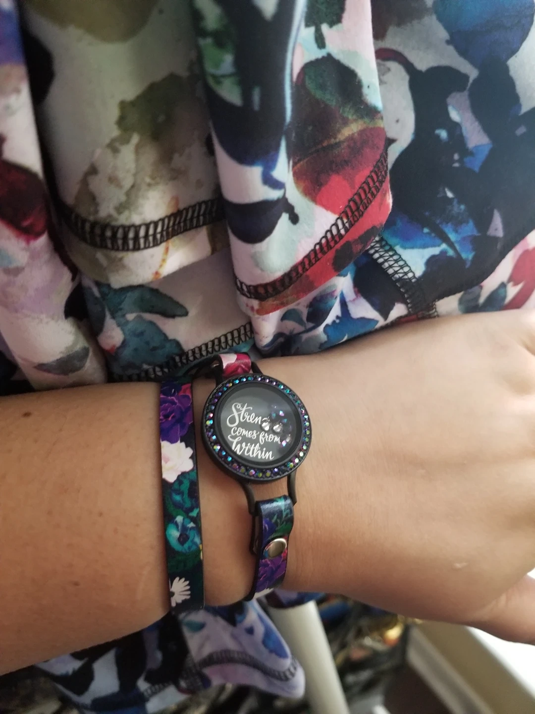 brand new fashion floral leather bracelet with locket "strength comes from within "