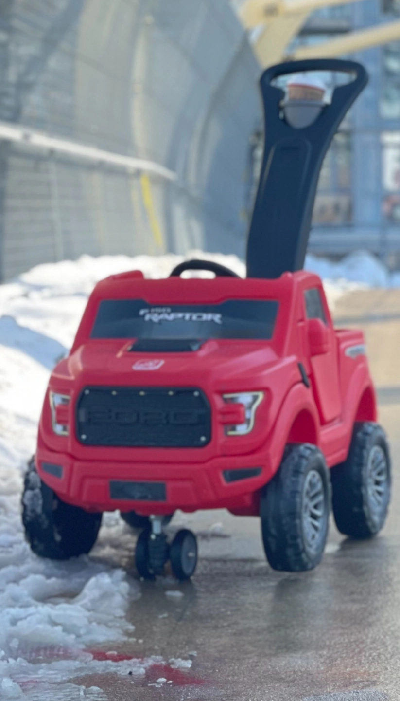 Drive with style and function with Ford Raptor detailing, 360-degree turning, 2 working doors with latches, and removable handle.