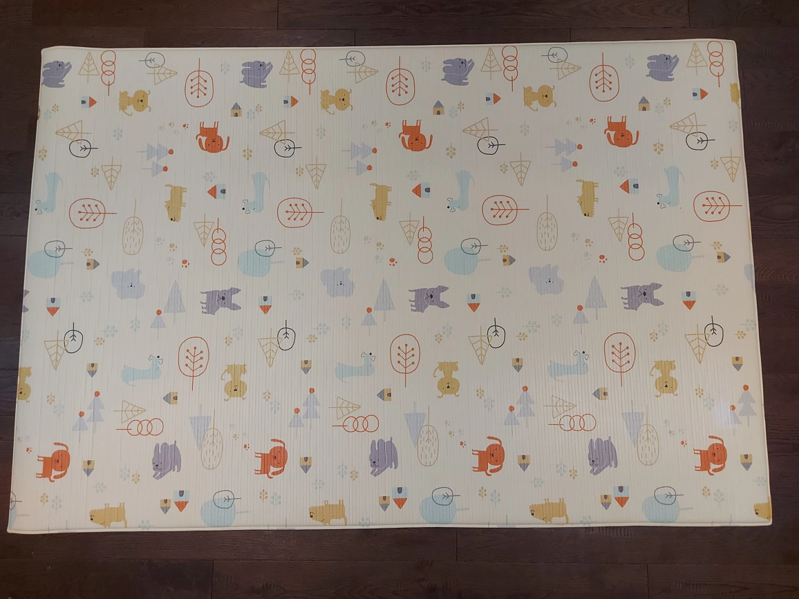 Super thick cushioning to protect your child from hard floors. It is water resistant and very easy to clean. It is double-sided and has gender-neutral colours.