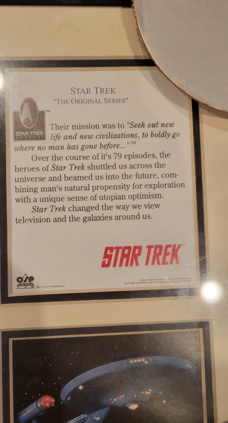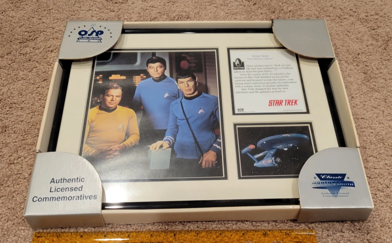 78Framed and still in the box authentic memorabilia featuring Star Trek - the original series!! Has been in my husband's childhood home since 1996 and ready to pass onto the next fan! Sfpfxp