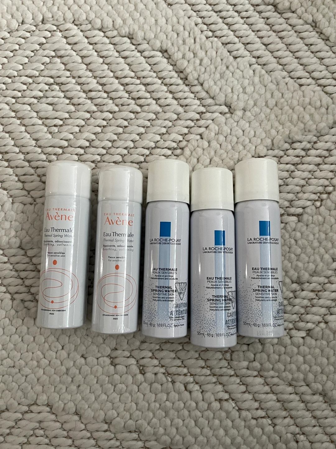 Brand new bottles of thermal water from La Roche Posay and Avene.