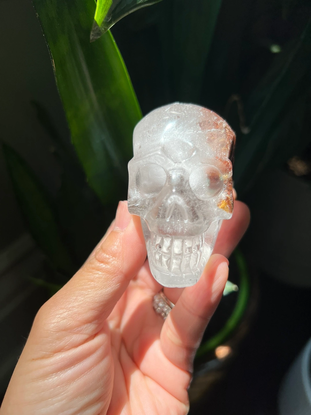 Garden quartz skull carving (J) | crystal