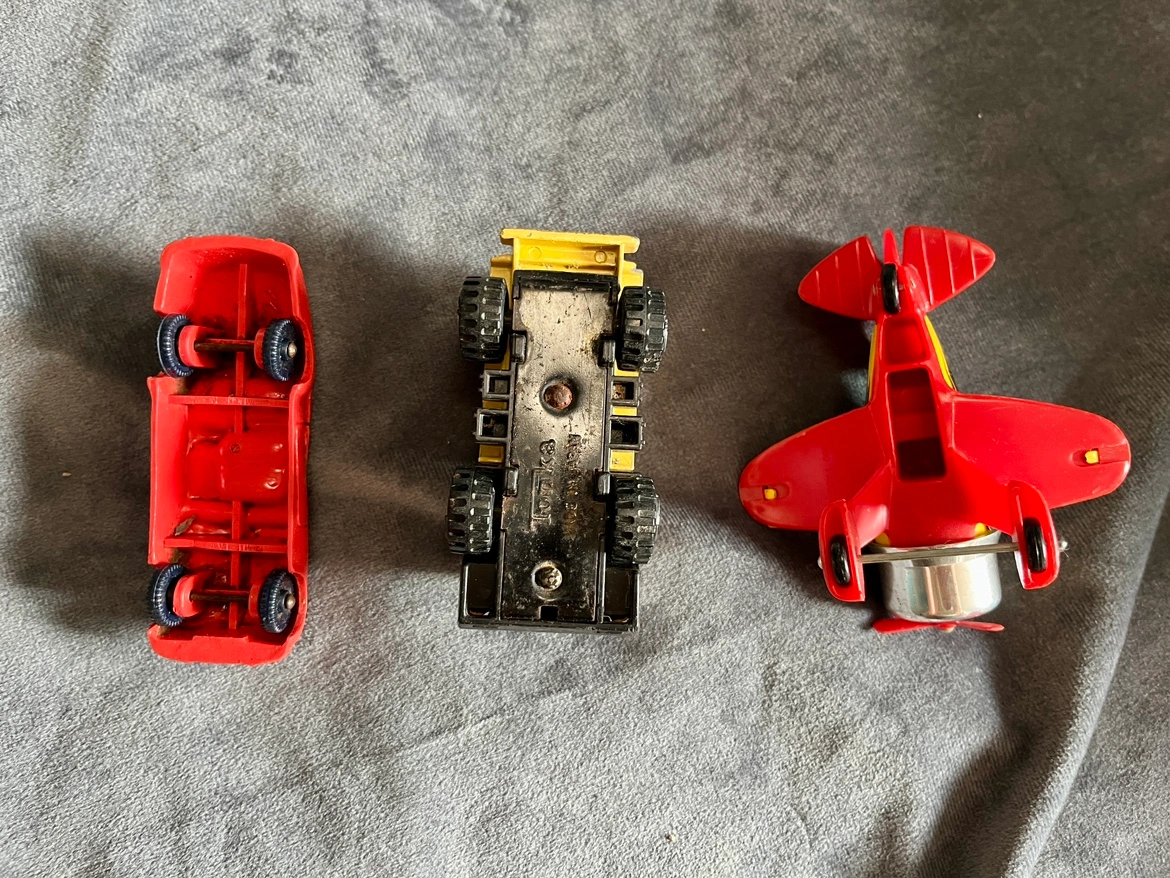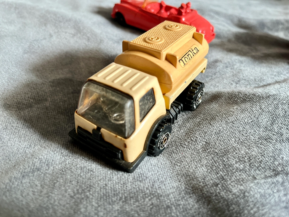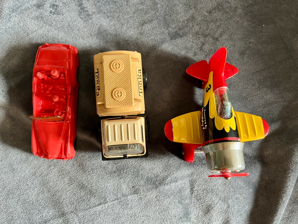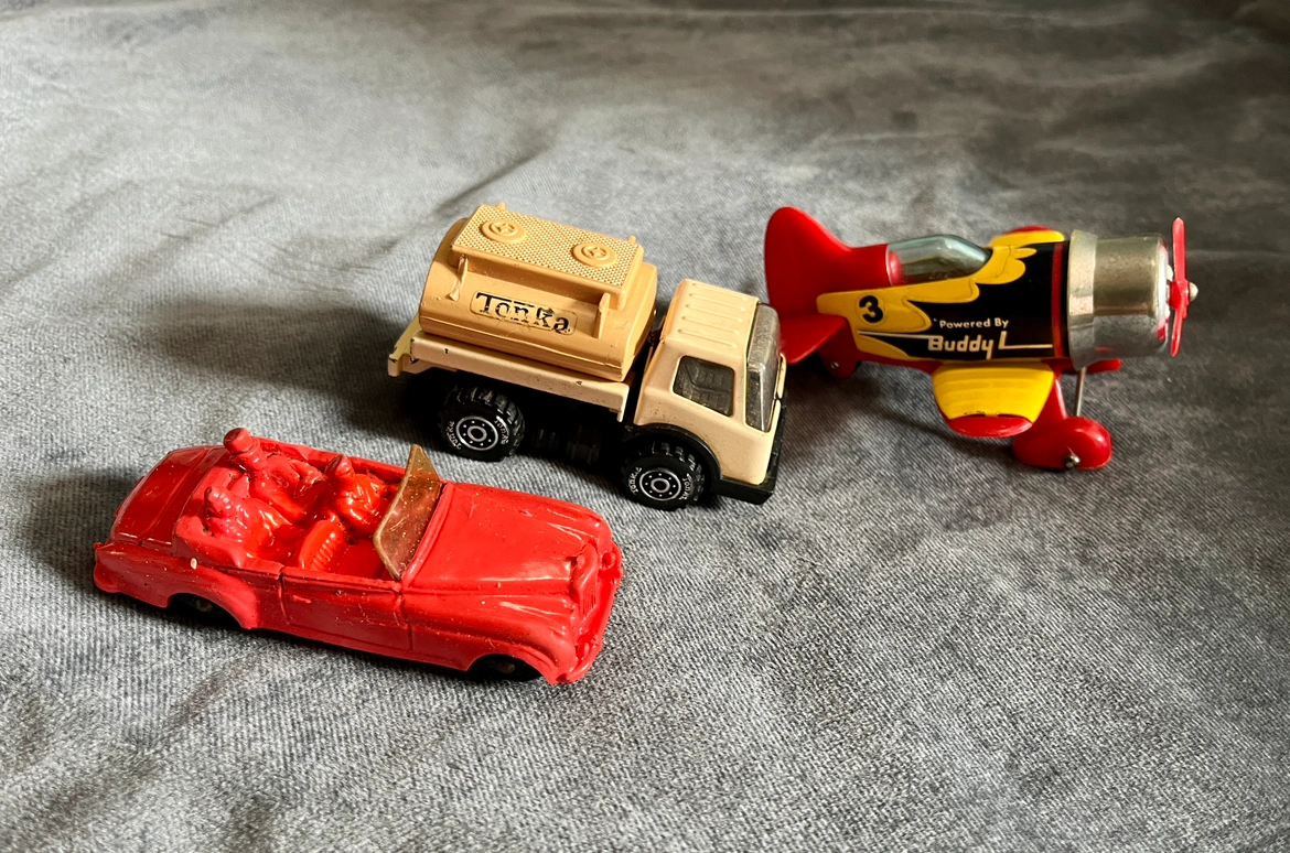$20 for 3 vintage vehicles from 1970s (or $10 for 1). All in used condition. Includes: - Red Tomte Laerdal Stavanger Bentley (rubber) - Tonka fuel tanker truck made in Japan (metal and plastic) - Buddy L yellow & red Sky Racer #3 Airplane Single Propeller Plane 1978 Pickup only. St Clair W and Spadina Road area.