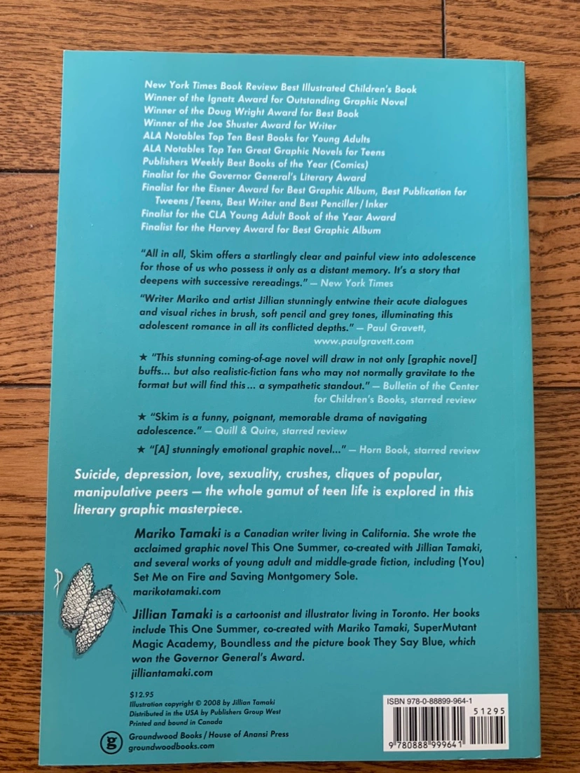 728Overall in good condition from the cover to the pages, is an illustrated comic book. No rips, stains, tears, smell, etc on the item either. Description: Skim is Kimberly Keiko Cameron, a not-slim, would-be Wiccan goth stuck in a private girls' school in Toronto. When a classmate's boyfriend kills himself because he was rumoured to be gay, the school goes into mourning overdrive, each clique trying to find something to hold on to and something to believe in. It's a weird time to fall in love, but that's high school, and that's what happens to Skim when she starts to meet in secret with her neo-hippie English teacher, Ms. Archer. But when Ms. Archer abruptly leaves, Skim struggles to cope with her confusion and isolation, armed with her trusty journal and a desire to shed old friendships while cautiously approaching new ones. Depression, love, sexual identity, crushes, manipulative peers --teen life in all its dramatic complexities is explored in this touching, pitch-perfect, literary graphic masterpiece. Cousins Mariko and Jillian Tamaki collaborate brilliantly in this poignant glimpse into the heartache of being sixteen. Comes from pet free, smoke free, and bug free home Able to meet up at any TTC subway station on the yellow line Check out my other listings