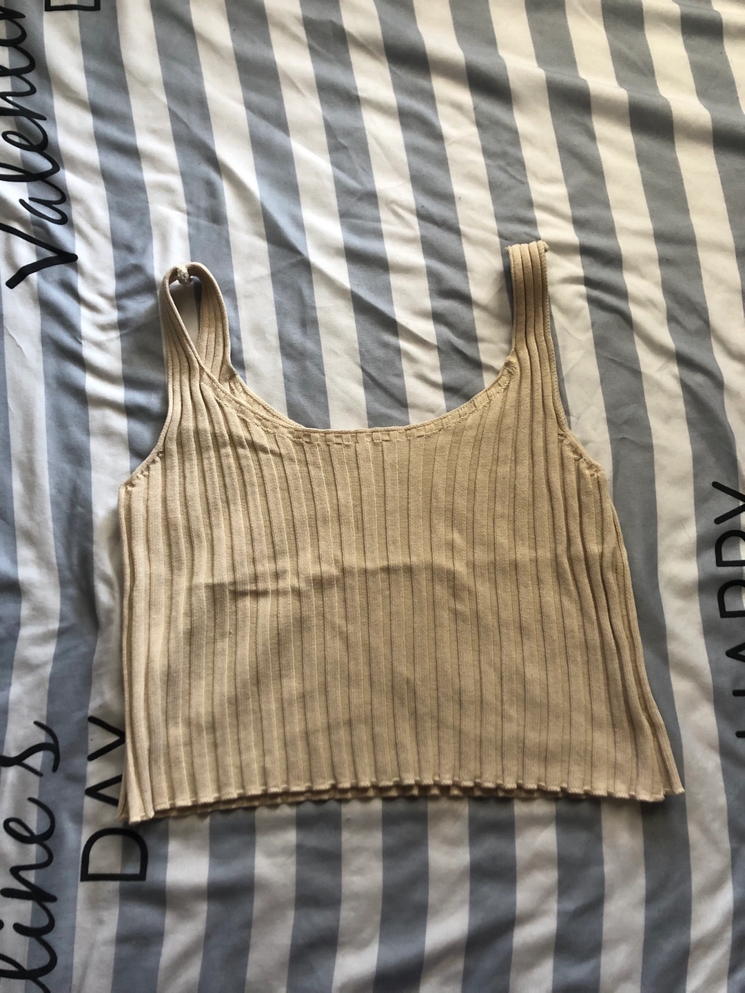 224Both together for $2 Stripe black and white crop top Stretchy fabric Beige crop top Some stretch fabric